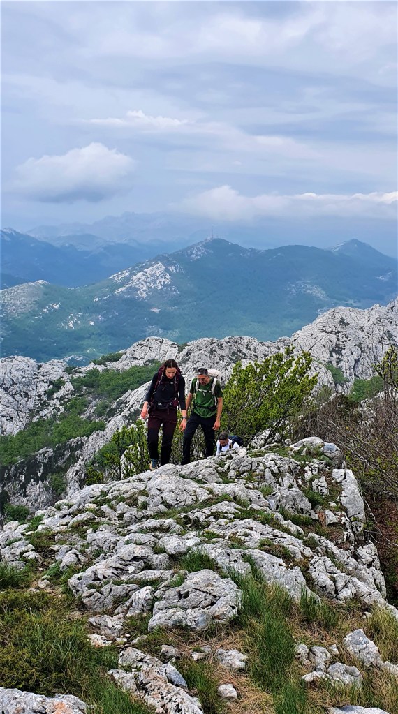 Spuštamo se s grebena istim putem, no ovo je područje kukova i jama te naši putevi vode gore – dolje po oblim, bijelim stijenama Crnopca.