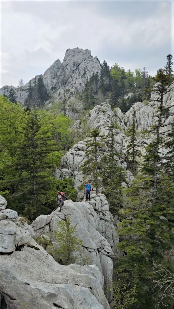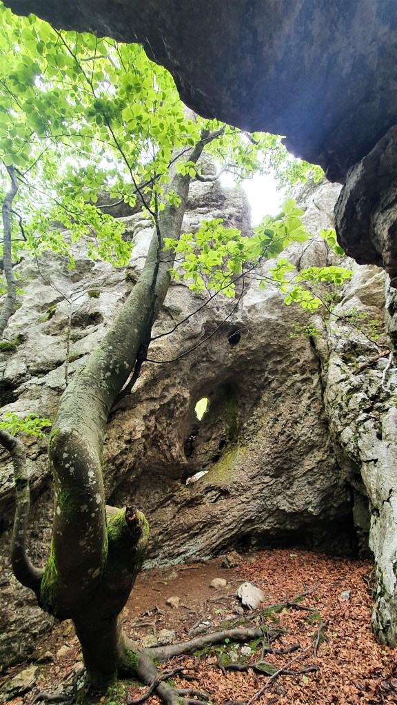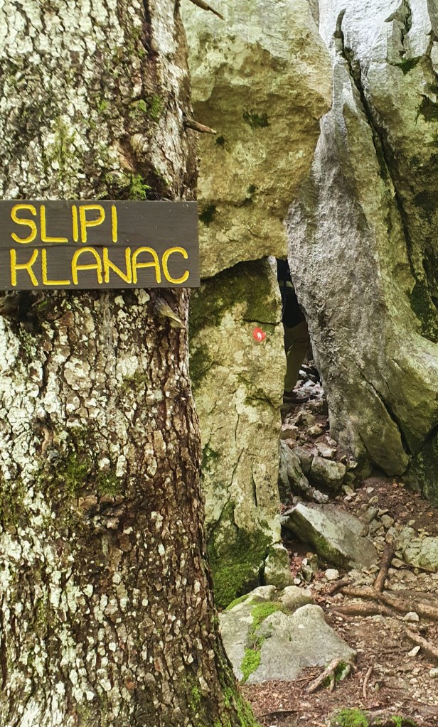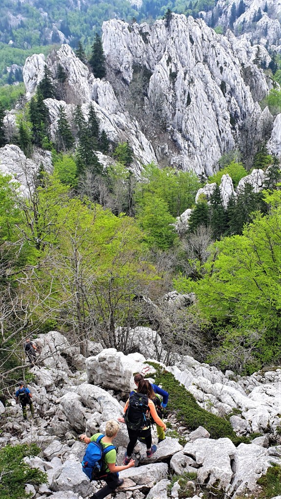 Hodamo bukovom šumom Crnopca, najjužnijeg dijela Velebita, iz koje izranjaju kamene stijene i ukazuju da će vrlo brzo ovo postati kamena avantura.