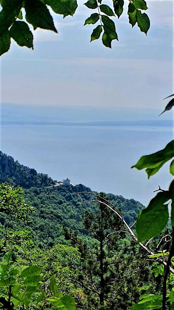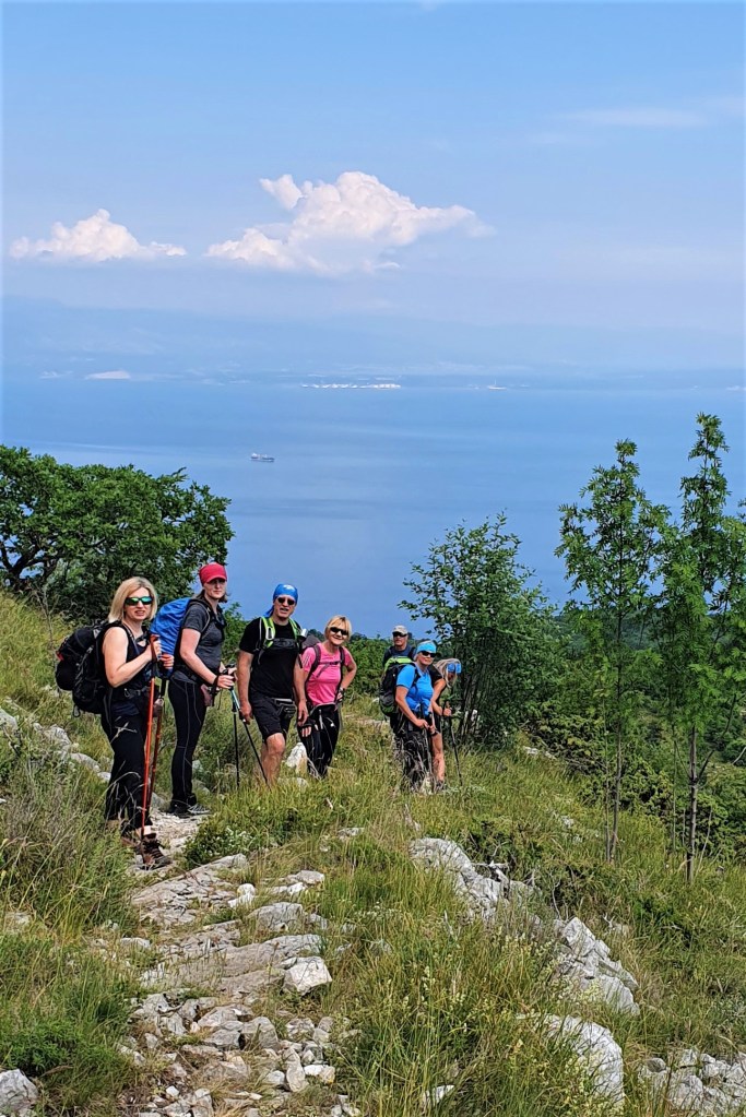 9:15 Ruksak na leđa i put pod noge. Dalje od mora, plaže, ležaljki, mirisa mora i ugode. Jedino što s obalom dijelimo je sunce. Jako su tople njegove zrake danas. Grije nas kroz guste krošnje, a znoj koji se slijeva niz obrve i lice zalijeva cvijeće uz stazu kap po kap, kao navodnjavanje. Strmo je i sparno.