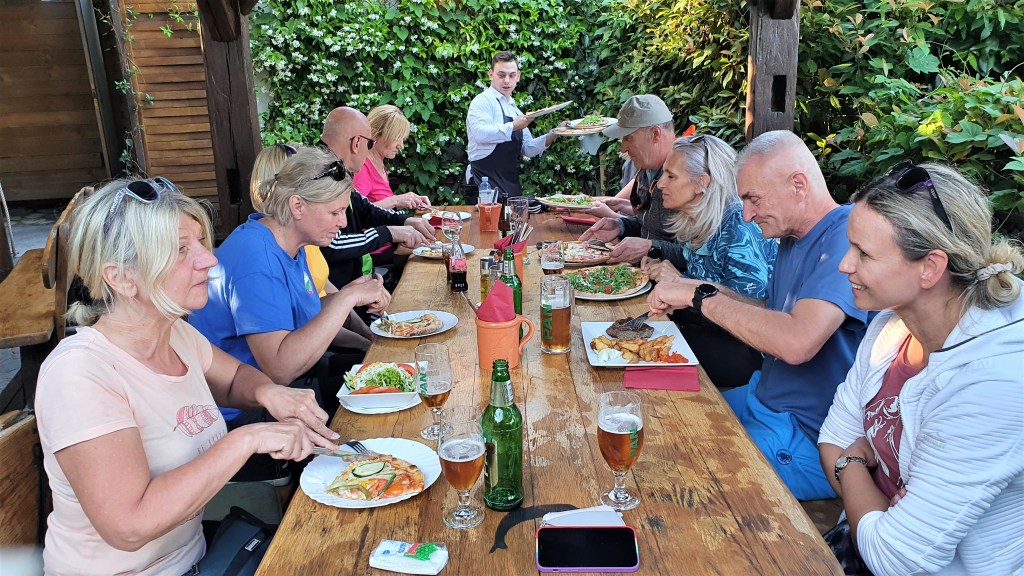 Ma, nismo naročito gladni, no lijepo je ovako izdašan izlet zaokružiti druženjem oko stola uz miris pizze i roštilja s dobrom ekipom.