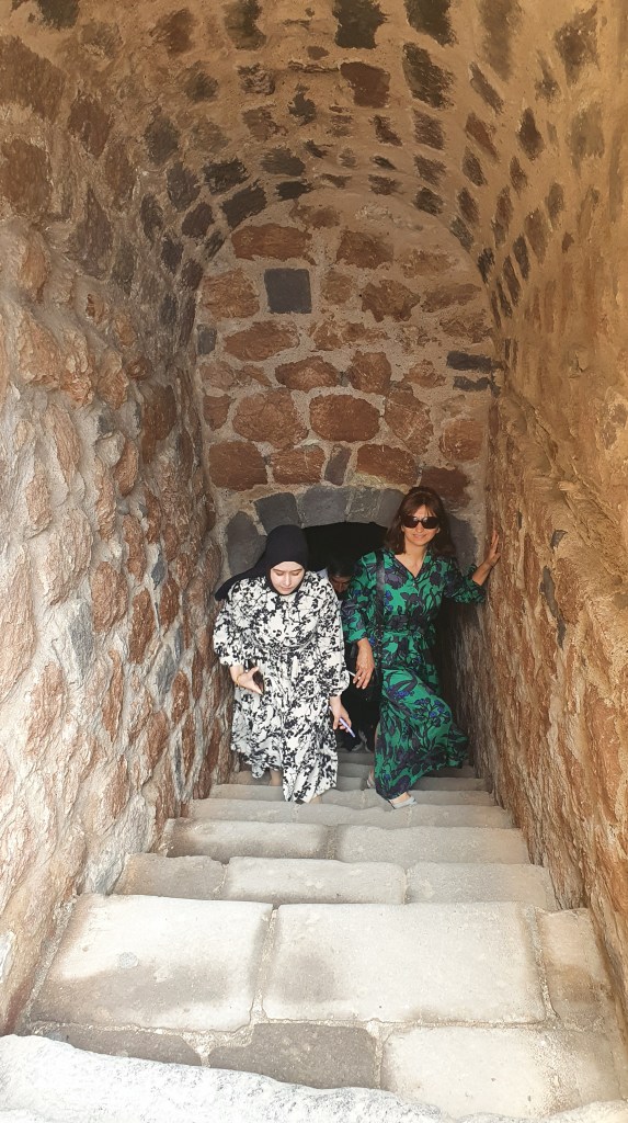 Grad Dogubeyezit nalazi se podno planine Ararat, koju vidimo  sve vrijeme, a 35 km od granice s Iranom. Vozimo se do palače Ishak Pashe. Oduševila me vanjskom arhitekturom, grandioznošću i uklopljenošću u planinu, no labirint podrumskih prostorija (tamnice) odaje da se ovdje nisu lijepe stvari događale. Gradnja svejedno oduševljava i predstavlja povratak u prošlost.