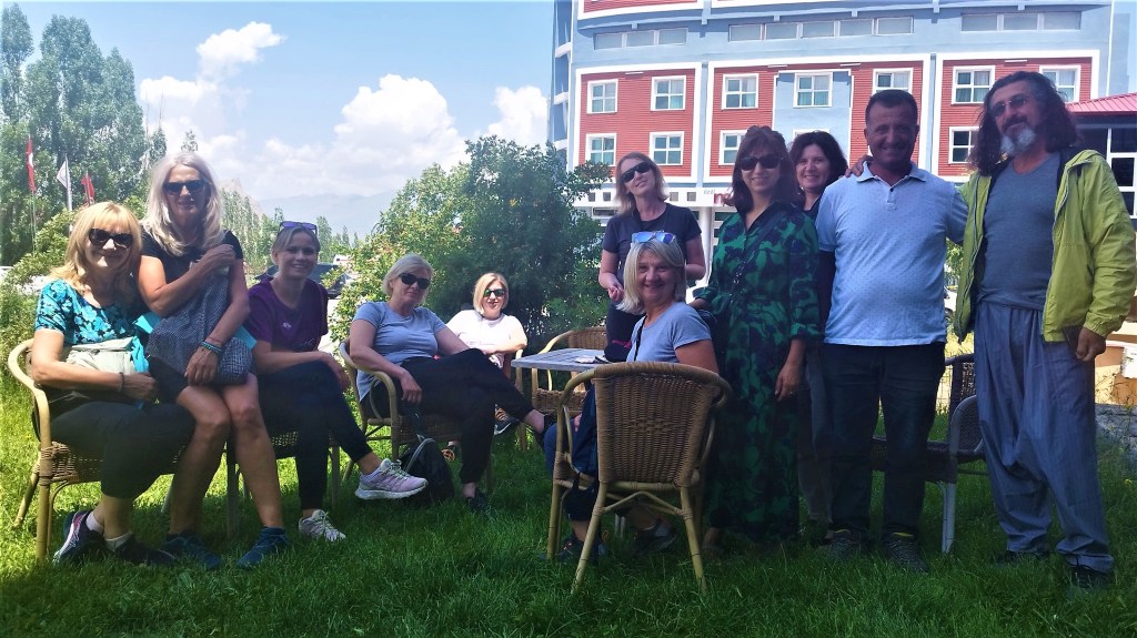 Restoran u koji nas je odveo raspametio nas je rapsodijom okusa i mirisa. Najprije predjelo – ljutkasti namaz od povrća pomiješala sam sa povrćem za salatu narezanim na kockice. “Jedete li to ovako?”, pitam Zekija. “Noooo!!!”, ne može vjerovati. Umak se jede s toplim, tek pečenim kruhom nalik našim mlincima, a salata kao salata. Glavno jelo je često dosta ljuto, a pije se ayran – mliječni napitak sličan jogurtu, tek rjeđi, uglavnom nešto novo za nas. Ubrzo ćemo ga mnogi zavoljeti. Vino, pivo i žestice nisu dio ponude. Nismo isprobali koliko je grad siguran za turiste jer nas ne ostavlja same niti na trenutak. Na putu do hotela na ulici kupuje od poznanika domaće marelice. Odmah ih daje oprati i do hotela smo ih već pojeli. Bile su prefine! U vrtu hotela upoznali smo petero Turaka (dvije žene i 3 muškarca) s kojima ćemo dijeliti avanturu uspona na Ararat. – Inšallah!/Ako Bog da!