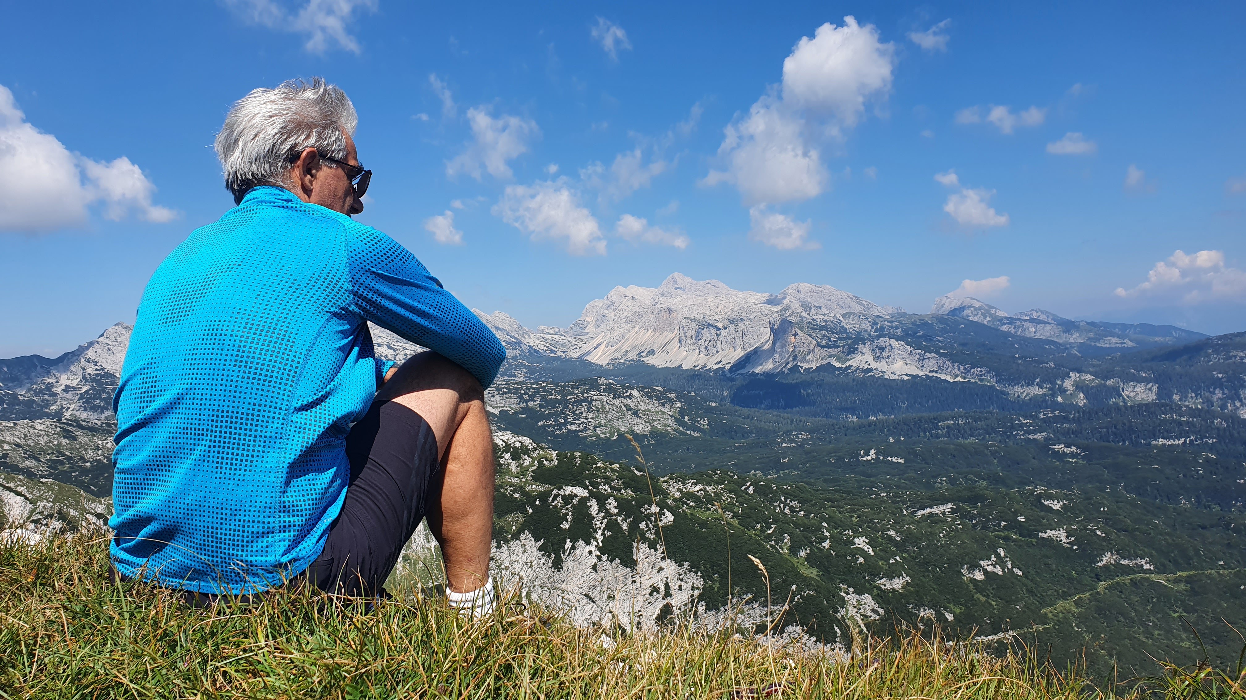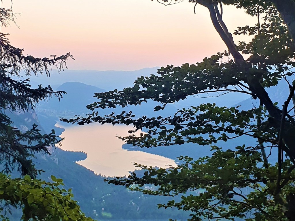 Ispred nas strše vrhovi Vogela, vidi se jezero Bohinj, a iza nas Krnsko jezero – meni najljepše jezero u slovenskim Alpama.