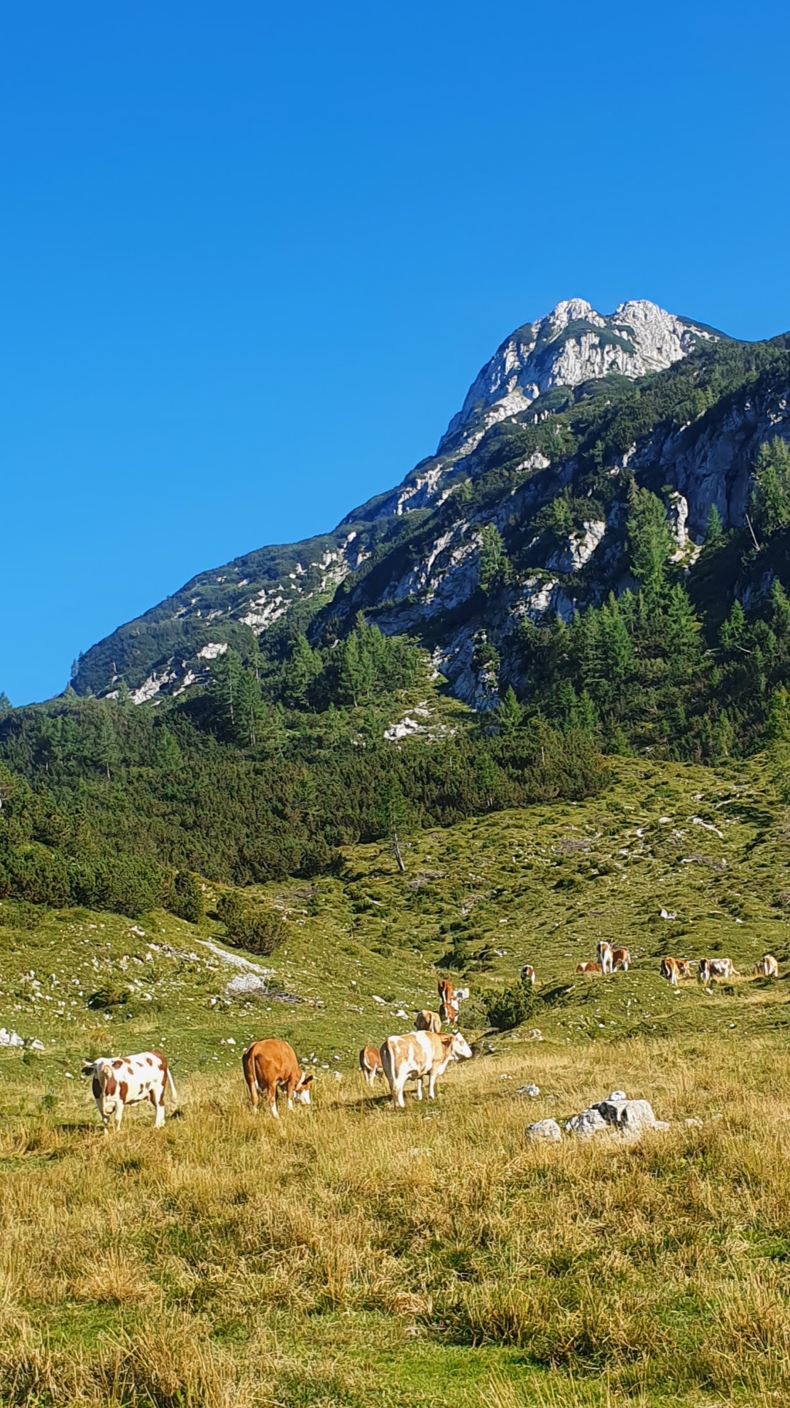 7:00 Ustajanje. Doručak i polazak u 8:30. Trava je još blago rosna, tišina alpska, vidici jasni, jutarnji, a Goran na telefonu sa suprugom Marijanom.