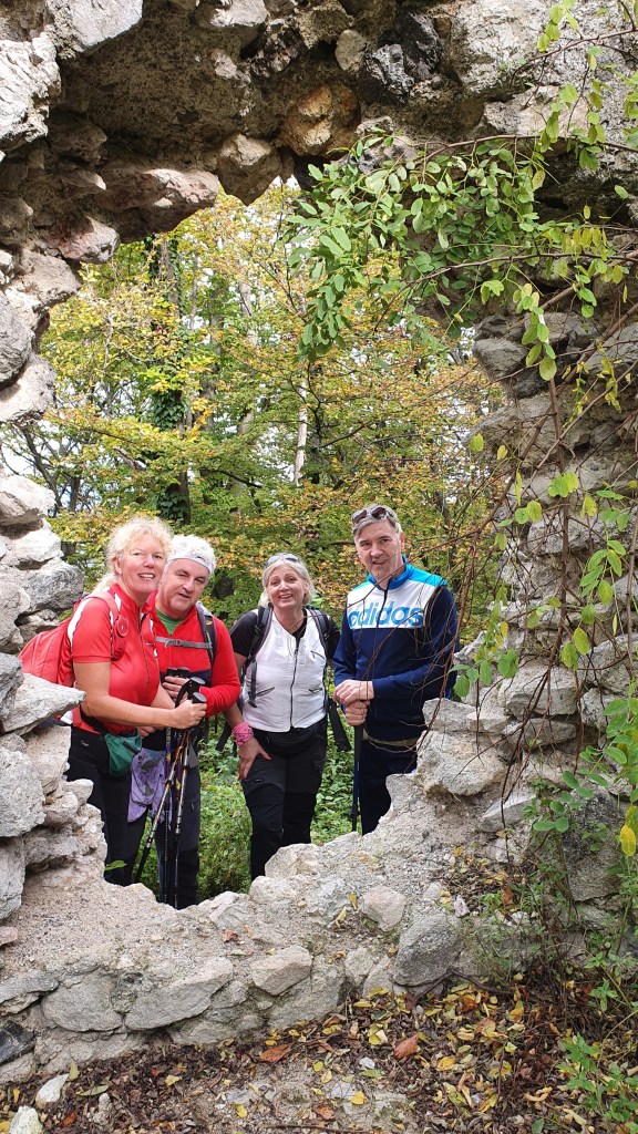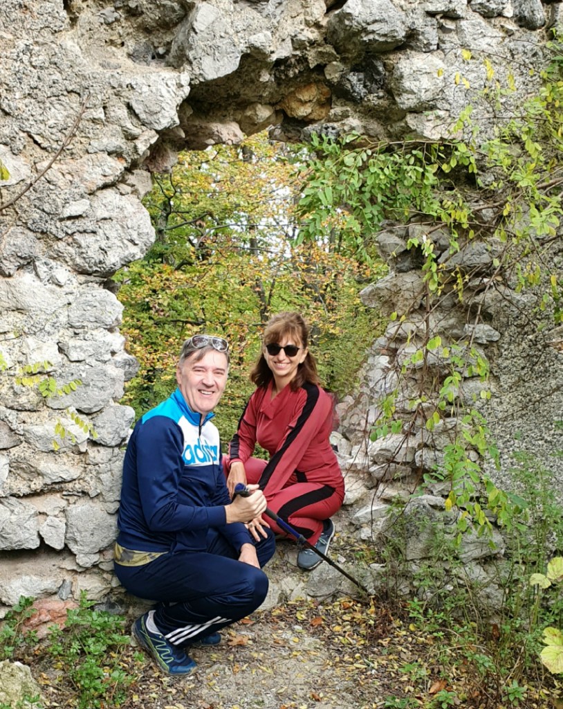 Planinarska staza kroz šumu je gusto markirana, šuškava i blaga prema nama, tek povremeno blatnjava. Planinarska kuća Cesargrad (464m) nedjeljom je otvorena i tu se može popiti piće. Dosta se planinara odlučilo za ovaj kratki uspon danas, cca 1 sat. S vidikovca gledamo ruševine Kunšpergrada na slovenskoj strani i dolinu rijeke Sutle. “Evo, gore desno je Cesargrad. Gore idemo!”, pokazujem Darku i Jasminki iz Rijeke, a ni Sandra iz Zagreba još tu nije bila iako smo bezbroj alpskih i velebitski vrhova prošle zajedno s pd Sokol Zagreb.
