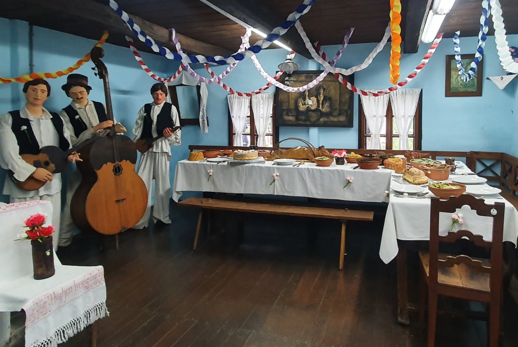 Ležerni smo danas, ali vrijeme svejedno prolazi i glad svejedno dolazi. Idemo autom u Kumrovec na dogovoreni ručak unutar prvog etno sela u Hrvatskoj u gostionicu “Kod starog”. Dok nam pripremaju zagorsku juhu i Titove štrukle ulazimo u prošlost, u muzej na otvorenom – u selo kakvo je nekad bilo. U jednoj kućici je prikaz zagorske svadbe, u dugoj priprema kruha, u trećoj izrada drvenih igračaka. U staji su zaprežna kola, ali i vatrogasna, uostalom, dođite vidjeti sami! Popnite se ljestvama na tavan da vidite ima li sijena i zavirite u vinski podrum da vidite jesu li bačve pune ili prazne. Mogu osjetiti miris još toplog mlijeka i macu koja mi se uvija oko nogu… Baka odlazi s posudom svježe pomuzenog mlijeka prema kući, dedu ne vidim od hrpe sijena koje donosi kravicama, ruke su mi pune toplih jaja, pazim da mi koje ne ispadne…