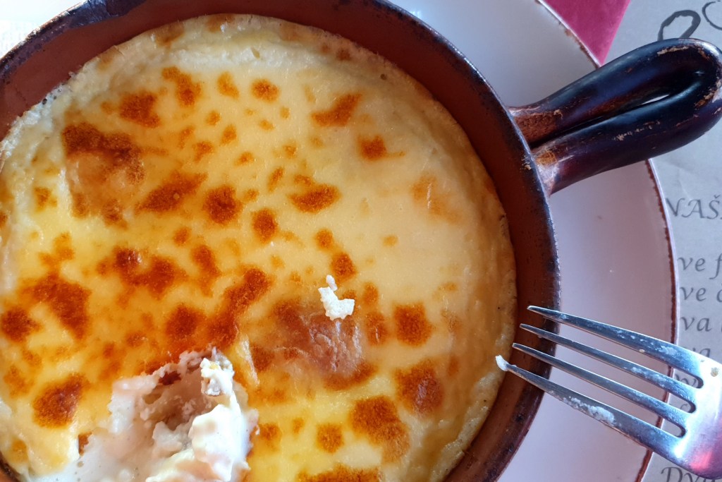 Na podmetaču za objed su stihovi Kumrovečkog pjesnika Drage Ulama (1936-2011), meni topli kao i ovi štrukli.