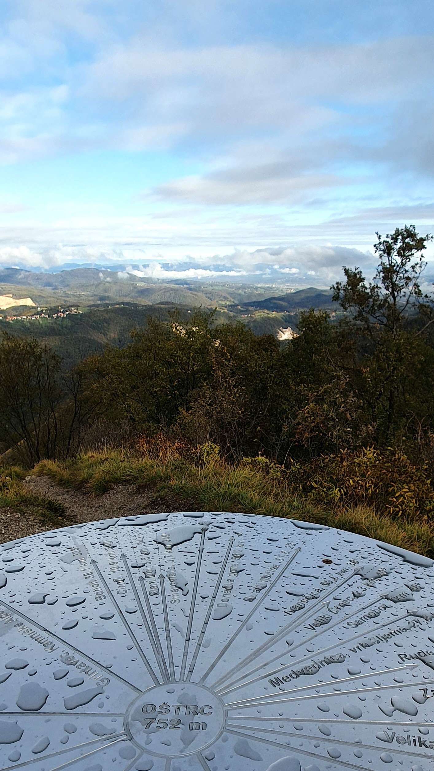 Vrh Rancerje (748 m) je livada s pogledom, prikladna za izležavanje i dijeljenje kolača za sunčanog suhog dana kakav danas nije. Dobro će nas ugrijati uspon na Oštrc i otvoriti apetit.