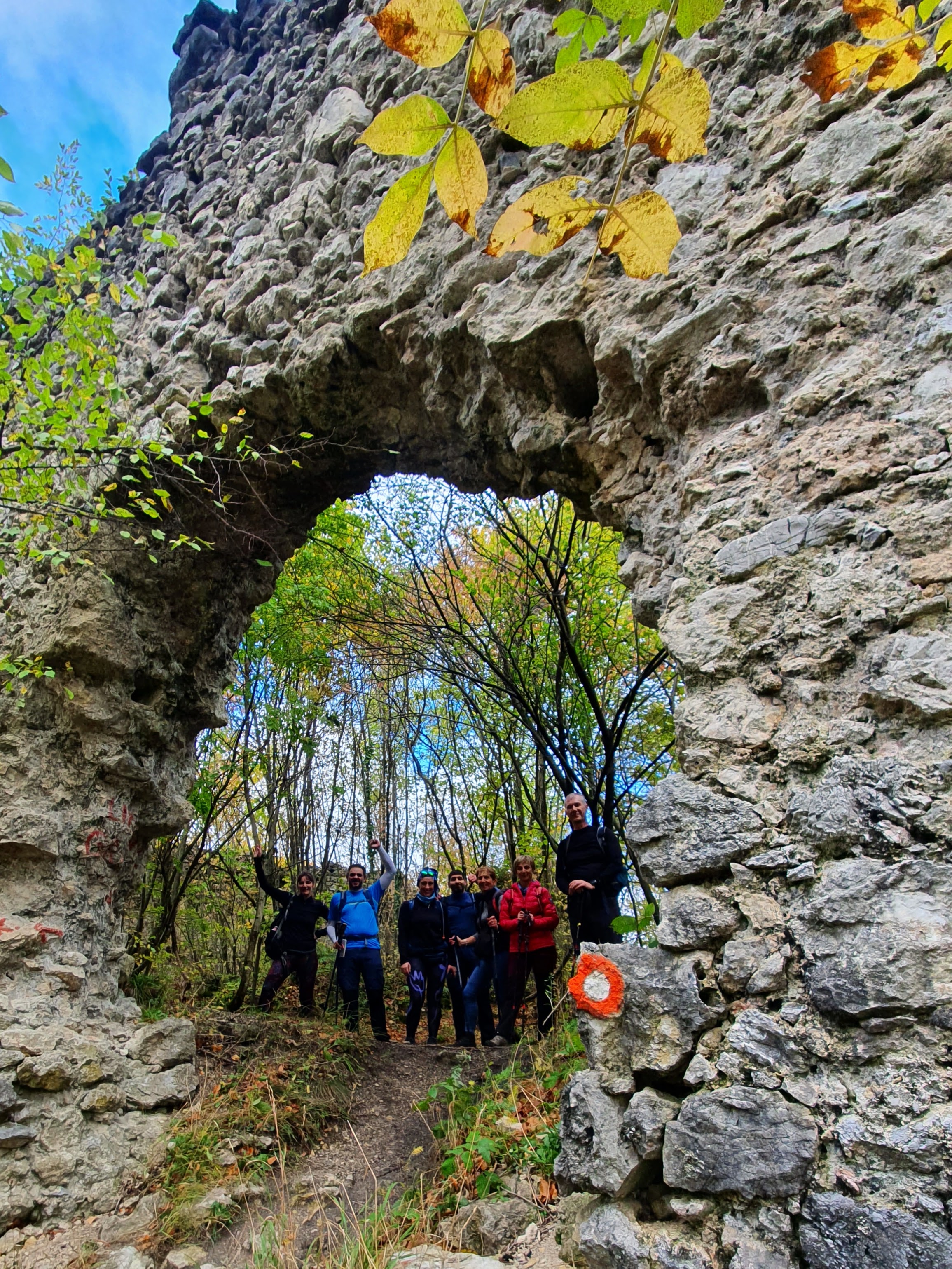 Srećemo markacistice s tečaja, kistovi i kantice u rukama. “Kako ide, kolegice?”, pita Goran, naš markacist. “Ide. Danas smo na terenu jer će sutra biti kiša, a sutra ćemo učiti o ovome što danas radimo.” Pitaju nas iz kojeg smo društva. “Sokol Zagreb”. – “Čuli smo da se društvo raspalo!” – “I mi smo to čuli, ali nije istina. Vidite da smo ovdje!”