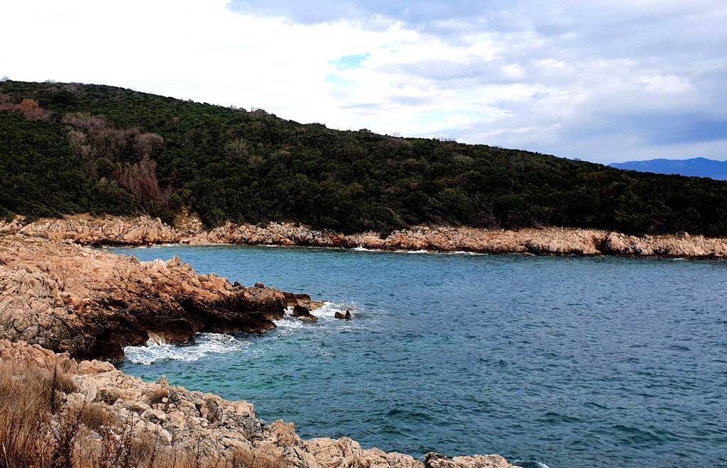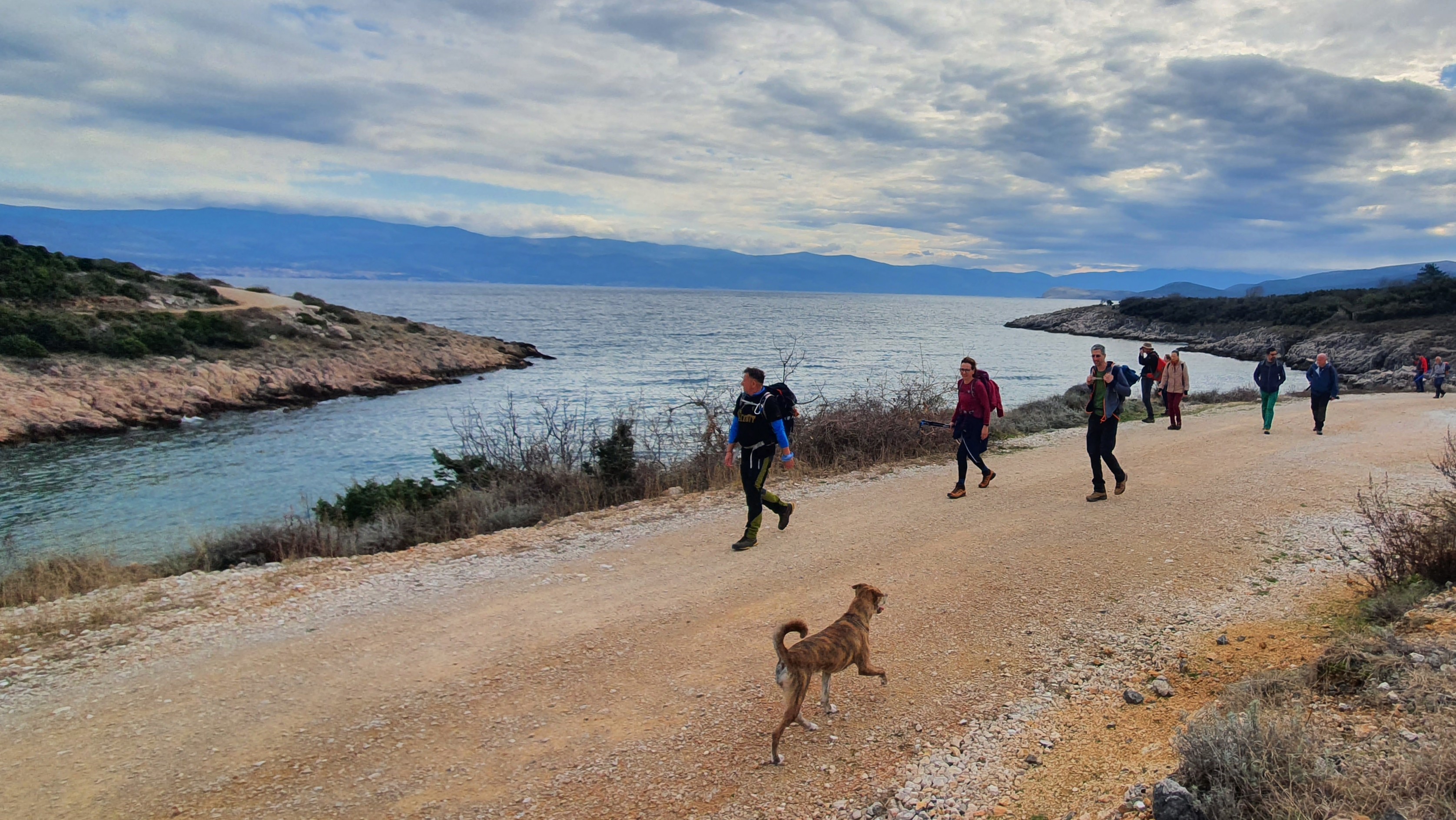 Na početku se staza poklapa s Camino Krk stazom, asfaltirana cesta spušta nas na obalu. S jedne strane zapljuskuju nas valovi i miris smilja, a s druge u grmlju cvatu visibabe i mirišu zumbuli. Neobično. Prolazimo uvalu za uvalom – Javna, Melska i Uvala sv. Marek. Na malom poluotoku uz posljednju uvalu, a u doba Frankopana sagrađena je crkvica, što je neobično, jer su gotovo sve na vrhovima brežuljaka. “Ovdje ćemo imati pauzu za ručak.” – uvijek razveseli.