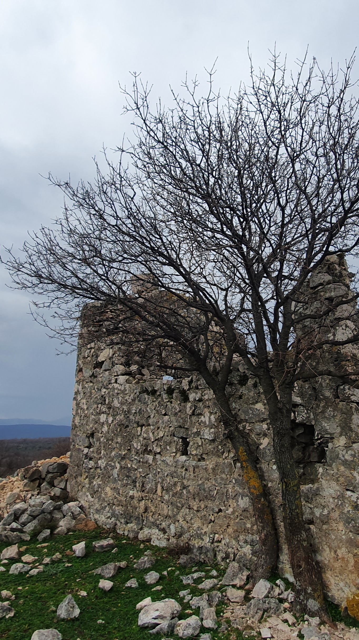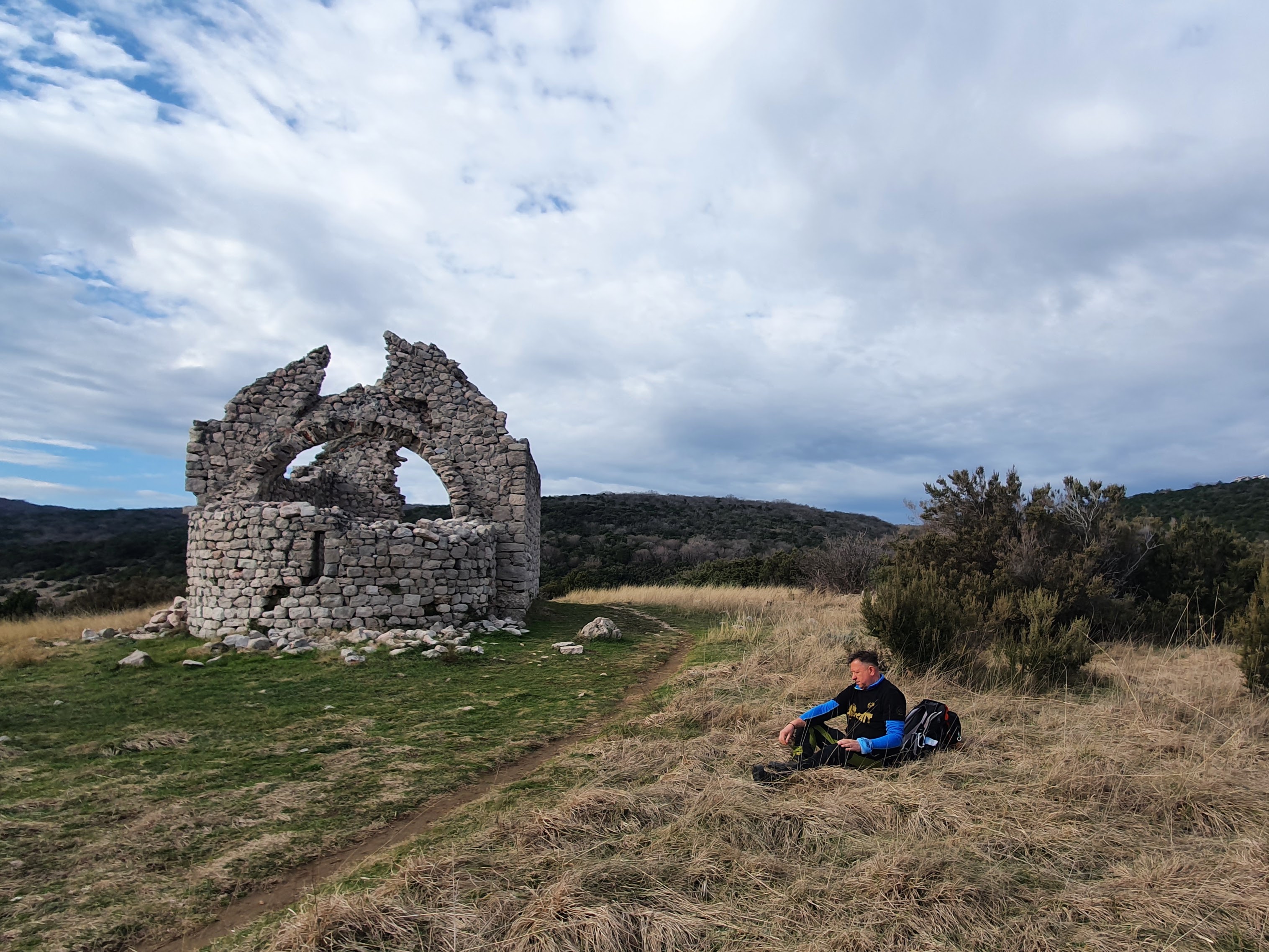 “Hoćemo se popeti na vrh Keršovan?”, pita kolega. “Hoćemo, ohladili smo se, pa da se ugrijemo!” Ovce nas blejanjem žele otjerati, ali ne damo se, nastavljamo do ruševne crkvice na vrhu. Sjeli bismo, napravili pauzu, ali kiša je moćnija od ovaca – tjera nas je dalje. Lagana je, topla i ugodna, gotovo proljetna, iako je veljača.