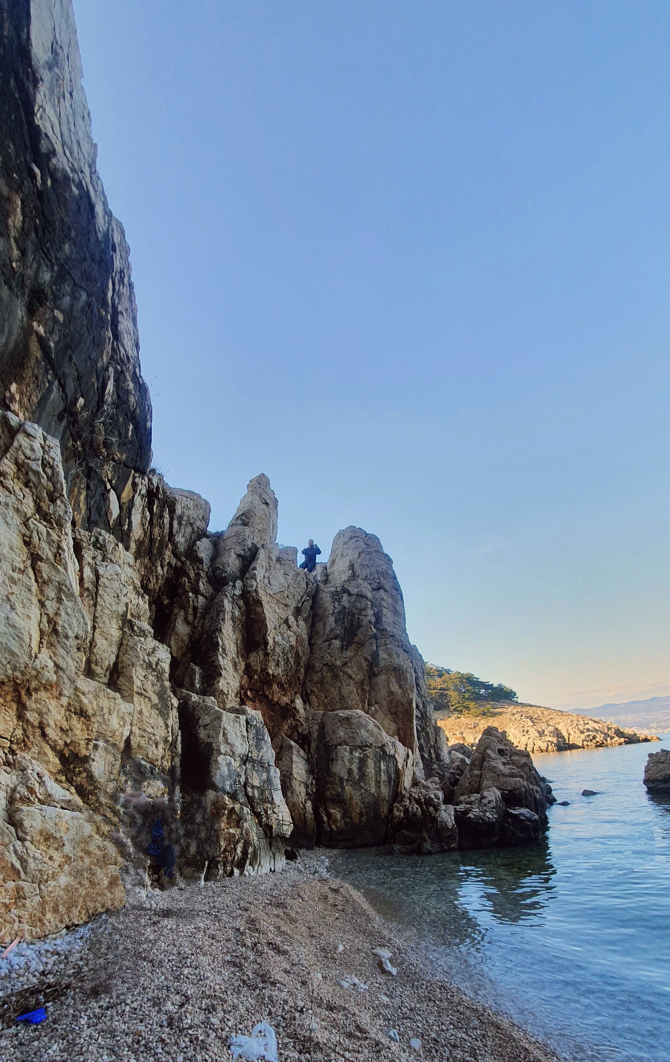 8:15 U jedinstvenom naselju na hridi, Vrbnik, vlada jutarnja tišina. Možda smo malo preglasni dok jurcamo kao kroz prošlost, a pod prozorima stvarnih ljudi, koji još spavaju i tražimo najužu ulicu na svijetu Klančić. Široka je 40 cm i mogu posvjedočiti da smo svi prošli, uz napomenu – neki jedva.