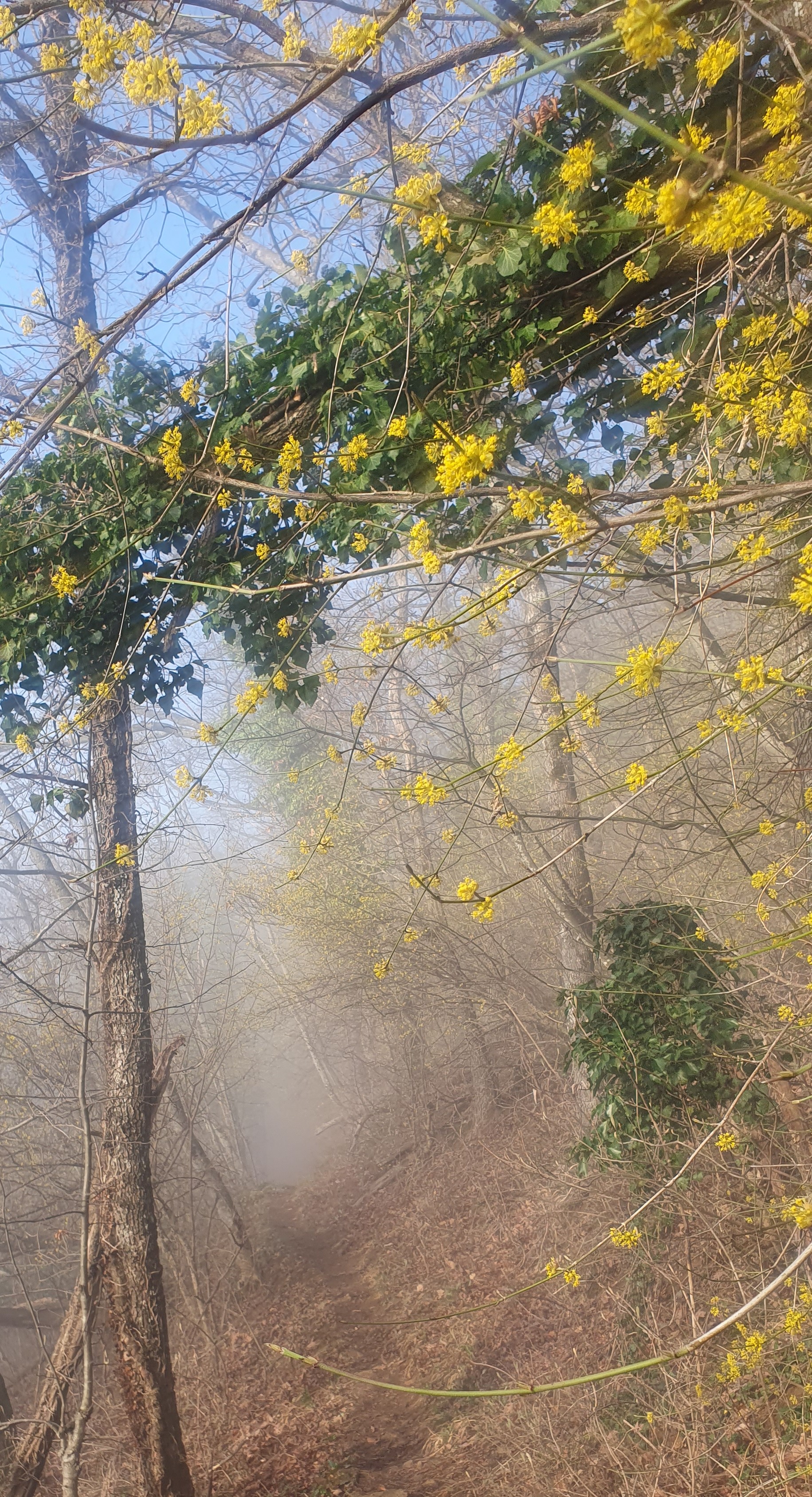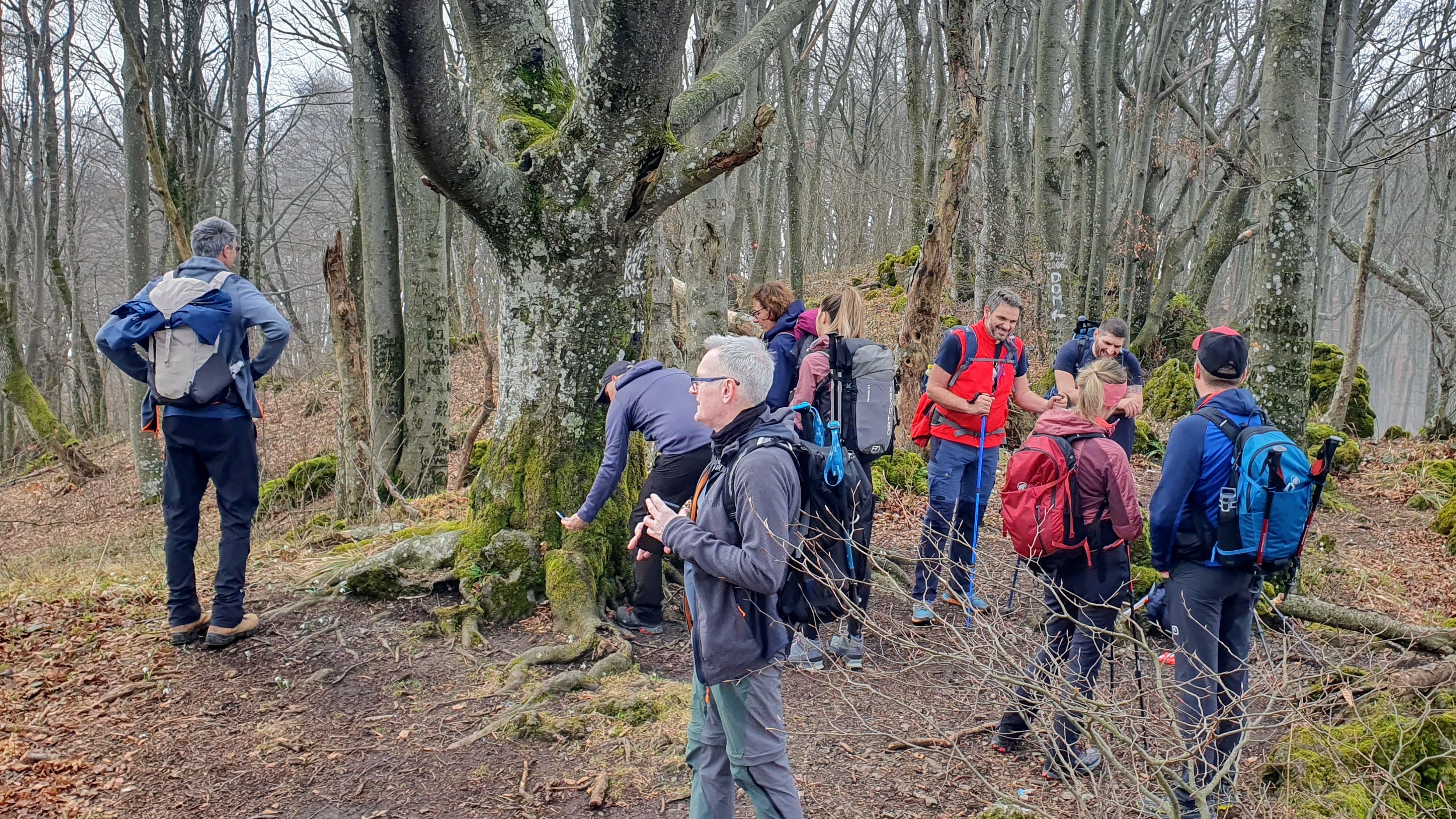 Okupilo nas se šesnaest. Odabrana staza počinje od Podgore Krapinske, a ide preko Jelenskih pećina, pa je tako i zovu. Strma je i ostavlja bez daha. Žao mi je zbog ekipe što je vidljivost na nizinu nikakva. Goran i ja smo prije tjedan dana imali sreću doživjeti je u sunčanom danu. I danas je šuma u cvijeću – visibabe, ljubičice, jaglaci, jetrenke, procjepak te žute krošnje drijenka.