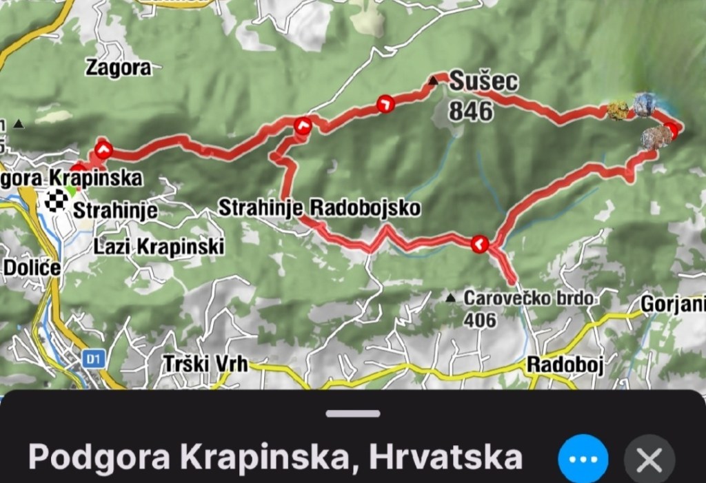 Staza je dobro markirana, utabana i zadovoljstvo je pratiti njene krivine do planinarske kuće Na Strahinjščici. Zadovoljstvo bi bilo i da je kuća otvorena, a ovako otvaramo ruksake. Danas je onaj dan, koji svi imamo jednom u godini, pa vadim štrudlu od šampinjona za početak, a nakon toga slatko – pita od jabuka. Prije tjedan dana ovdje smo popili izvrsno kuhano vino.