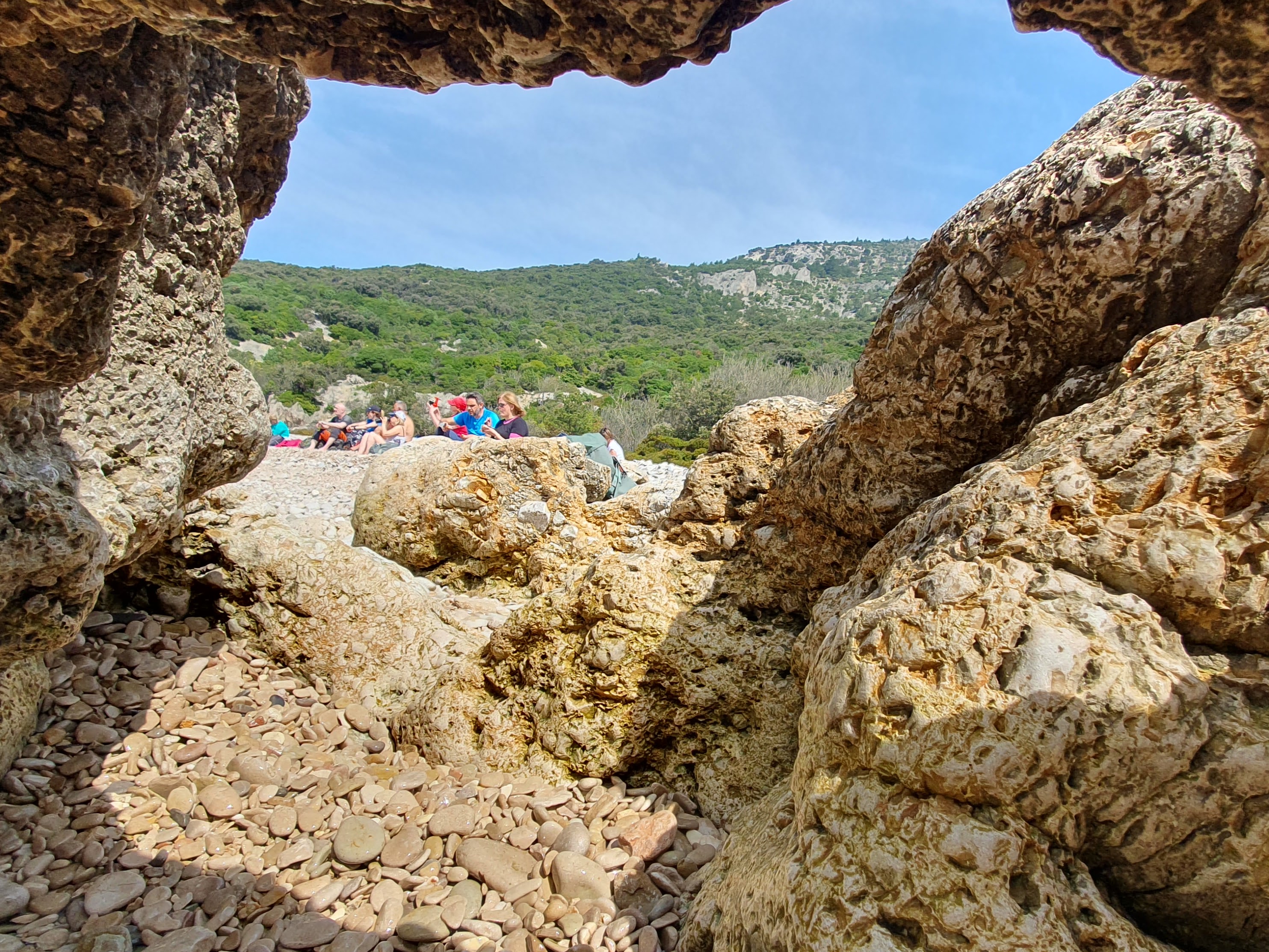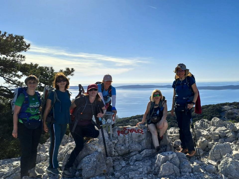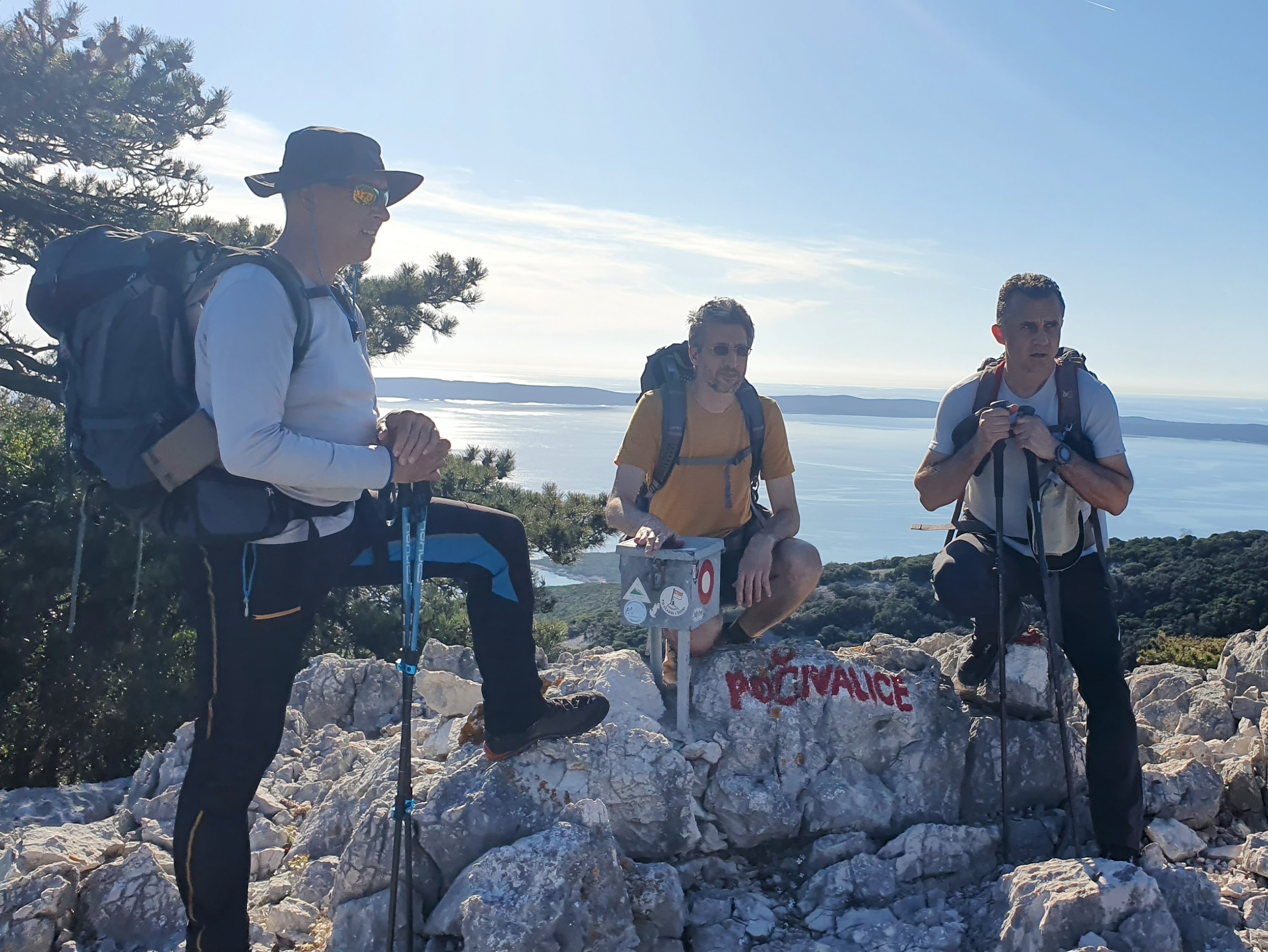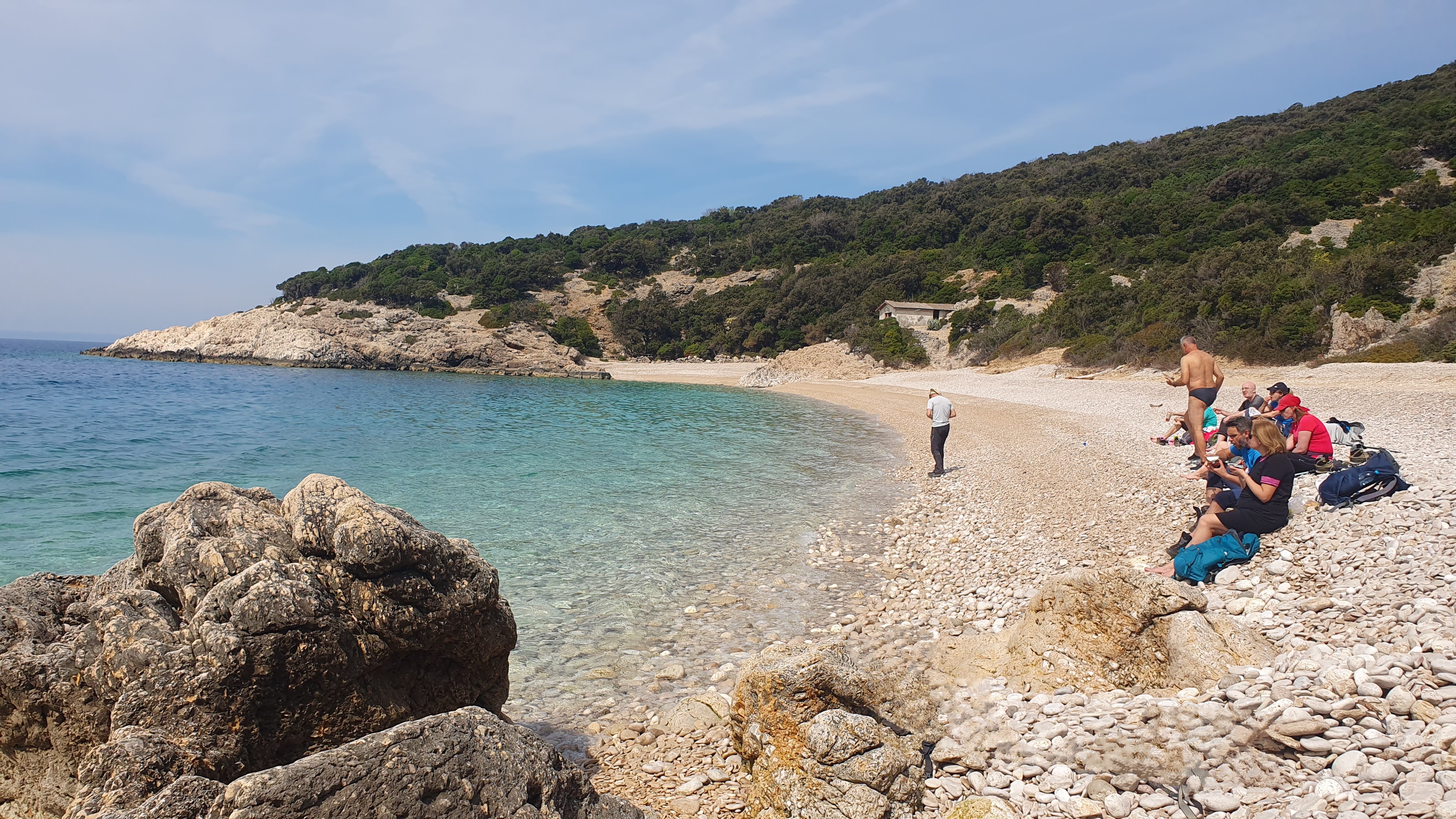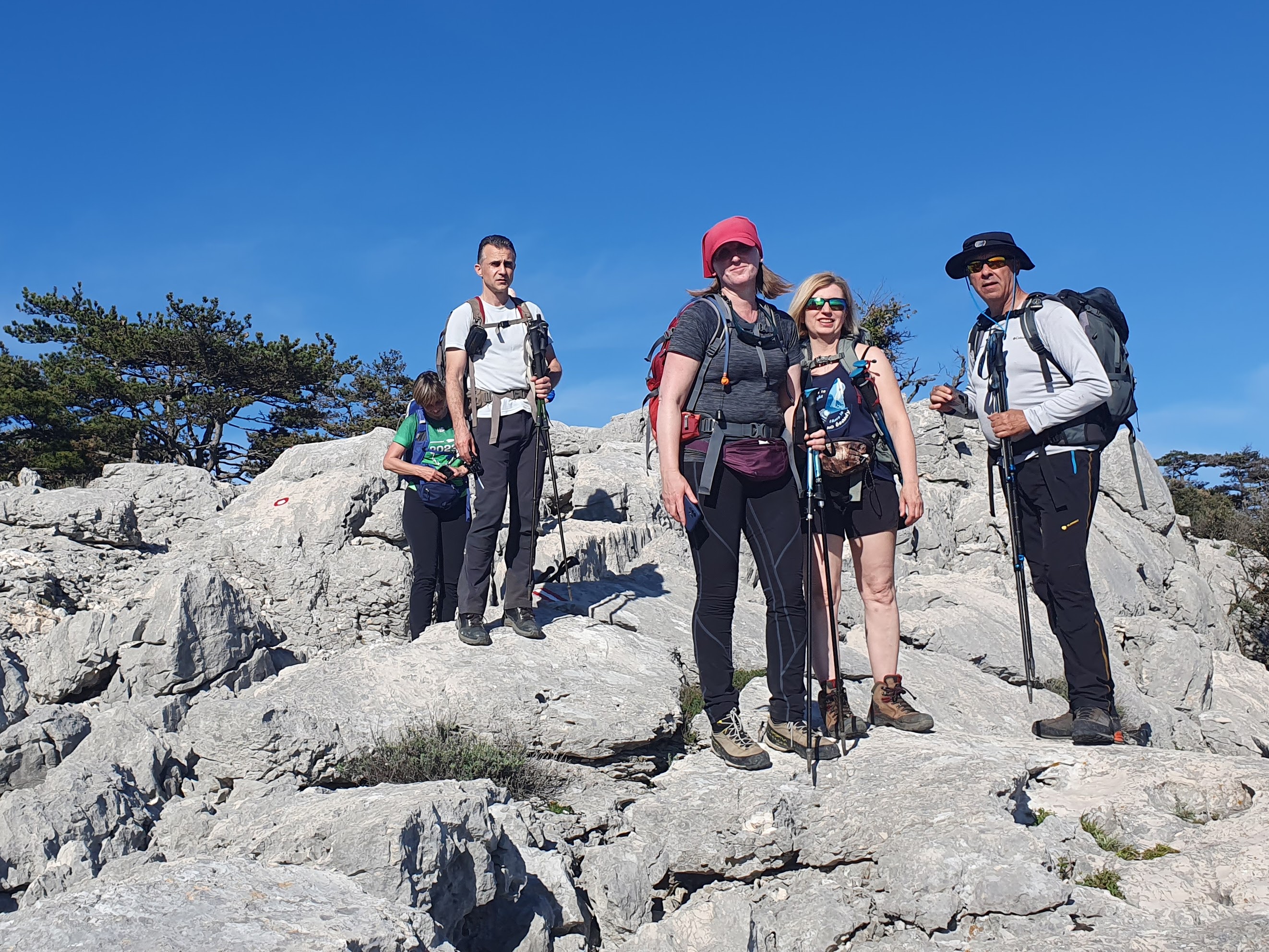 S vidikovca iznad naselja gledamo plažu Sv. Ivan i radimo bezbroj fotografija. Spuštamo se do obale skladnom planinarskom stazom. Čula sam da je strma, no nakon jučerašnje Osorčice, ovo je zanemarivo. Hoćemo li se okupati? Samo jedan od nas petnaest je dovoljno smion! 🙂 More je 15 C. U blizini je spilja Plava grota i još jedna zanimljiva uvala, no vrijeme curi nemilo kao i znoj pri ovom usponu, a naš sljedeći cilj vrh Sis čeka.