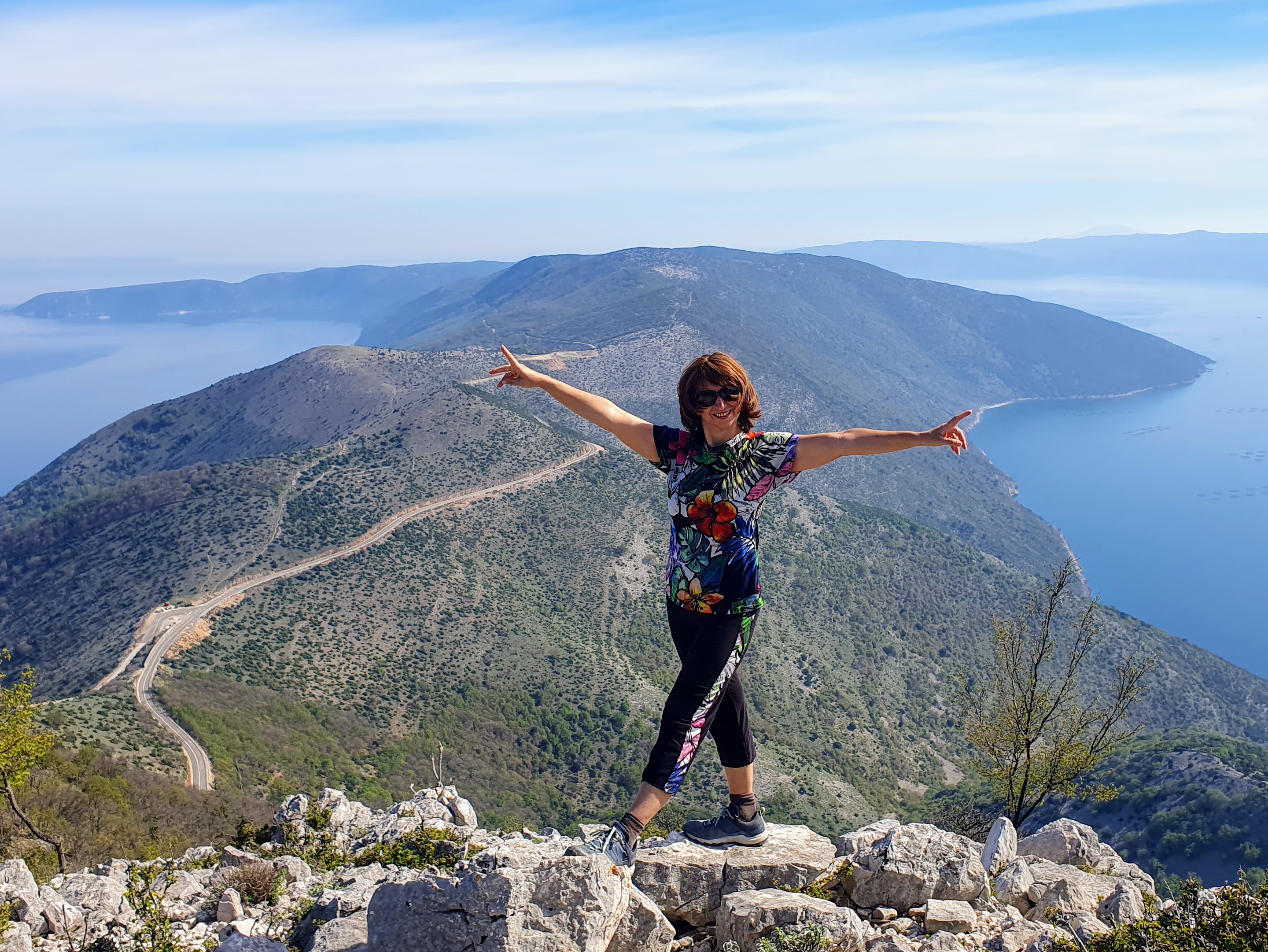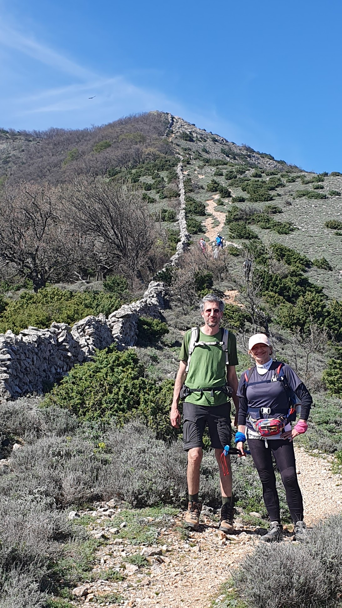 Izlazimo iz automobila ispod samog vrha Sis i pratimo suhozid. Iznad nas kruže ogromne ptice, kojima je raspon krila 2.5 metra, a ovaj uspon po vrućini je iscrpljujuć i najradije bih da me dva bjeloglava supa dohvate i odnesu na vrh, ispuste pod stablo hrasta u hladovinu i sjednu kraj mene. Ništa od toga, moram sama, jer dva supa ne bi mogla raširiti krila tako blizu jedan drugome i ne bi mogli letjeti. Tako i bračni partneri moraju imati prostora za raširiti krila da bi se mogli razvijati i biti sretni zajedno. To sam nedavno čula na radiju i baš mi se dopalo. Hvatamo trajekt u 17:30, zauzimamo najbolja mjesta u Putniku ispod Grobničkih Alpa te punog trbuha kujemo planove za vikend na Zavižanu 20.-21. travnja.