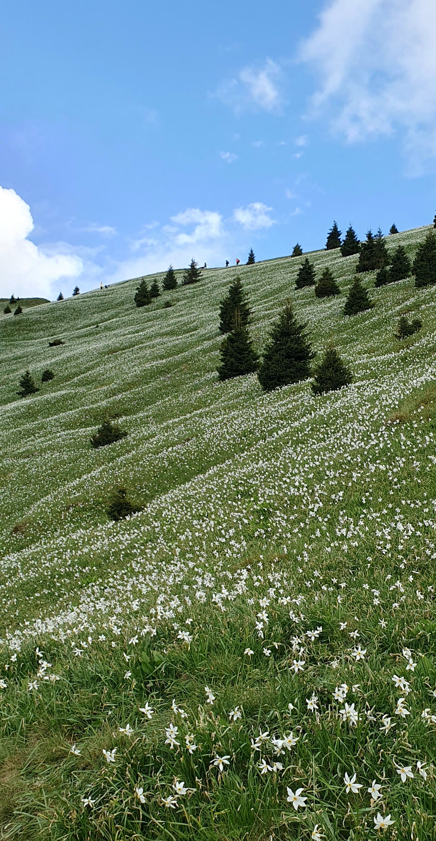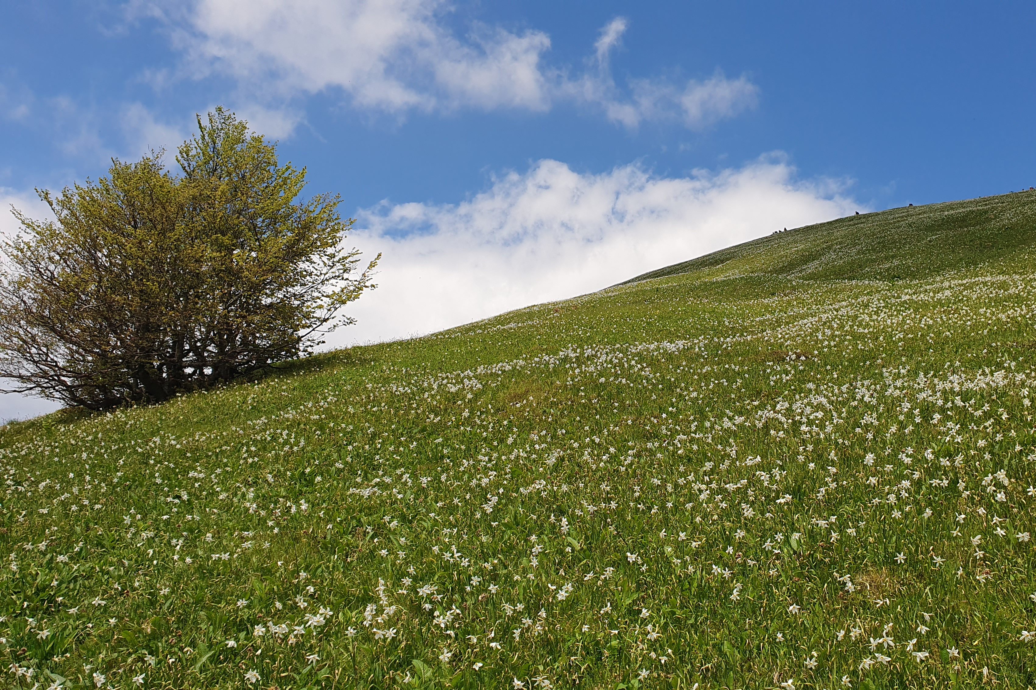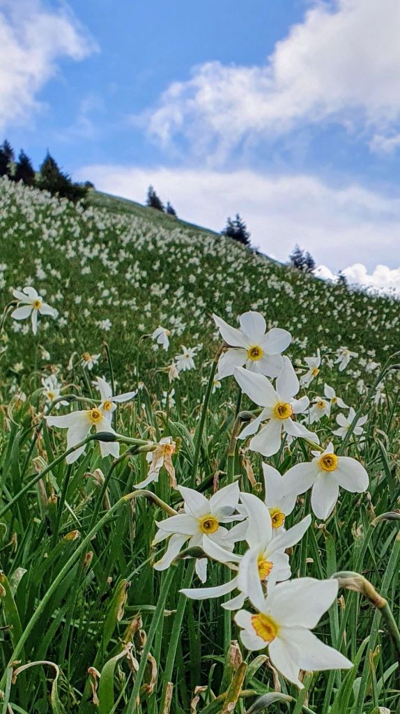 Krećemo se prema istoku, prema sedlu Suha, uskom stazom između livada rascvjetanih narcisa. Ljepša staza, vjerujem, nigdje ne postoji. Ponekad, kad se sunce i blagi povjetarac usklade – zapuhne nas cvjetni miris raja.