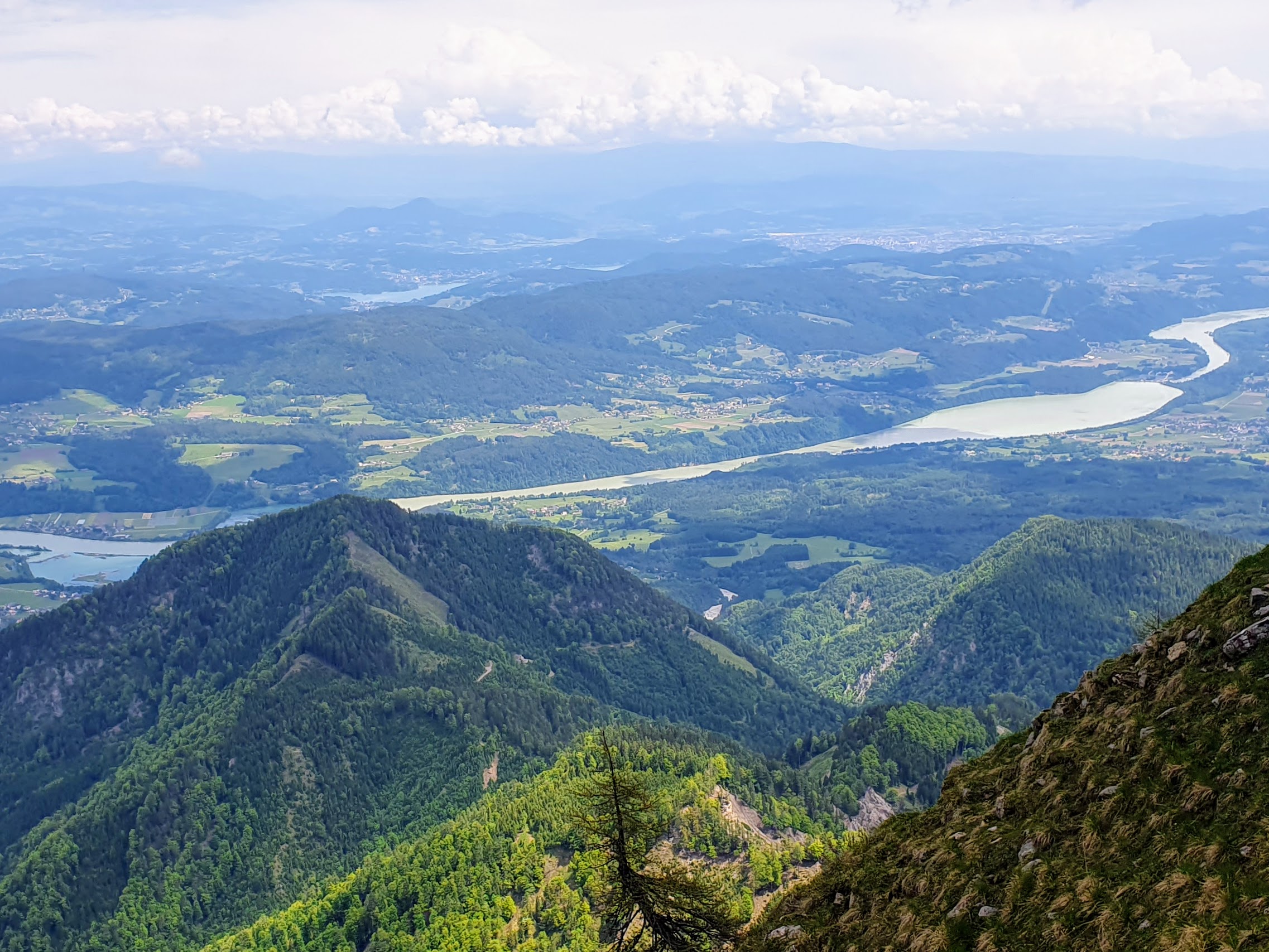 Od sedla mijenjamo smjer, okrećemo se prema zapadu i uspinjemo do vrha Mala Golica grebenskim putem. S jedna strane grebena i dalje caruju narcise, a s druge se otvara pogled na Austriju. Između Villacha i Klagenfurta vijuga Drava, a kladila bih se da pored jezera Worthersee vidim visoki toranj Pyramidenkogel na koji smo se popeli lani u vrijeme Adventa. Ma, čini se da odavde vidimo cijelu Austriju!