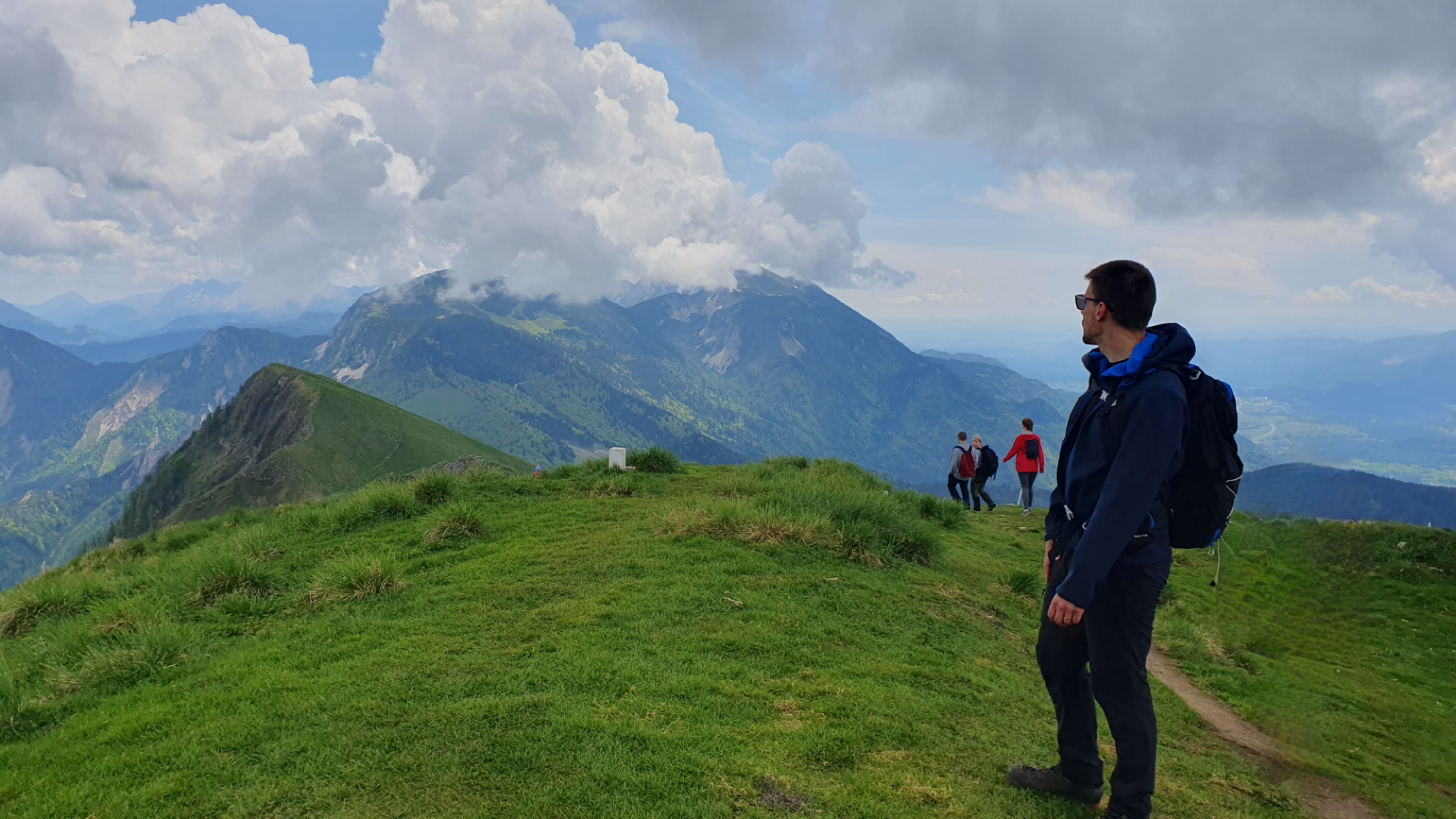 11:30 Na Maloj Golici, na 1646 mnv porazbacali smo se po travi, uronili u ruksake, a tu su i najbolje trešnje, koje nam je donio Boris iz svog vrta. Teško mi je mirno sjediti i prepustiti se trenutku s tim tamnim oblacima iznad glave. ” ‘Ajmo, moramo se požuriti!”, izgovaram svima nam mrsku rečenicu, a reakciju, inače duhovitog, Igora neću navesti. 🙂