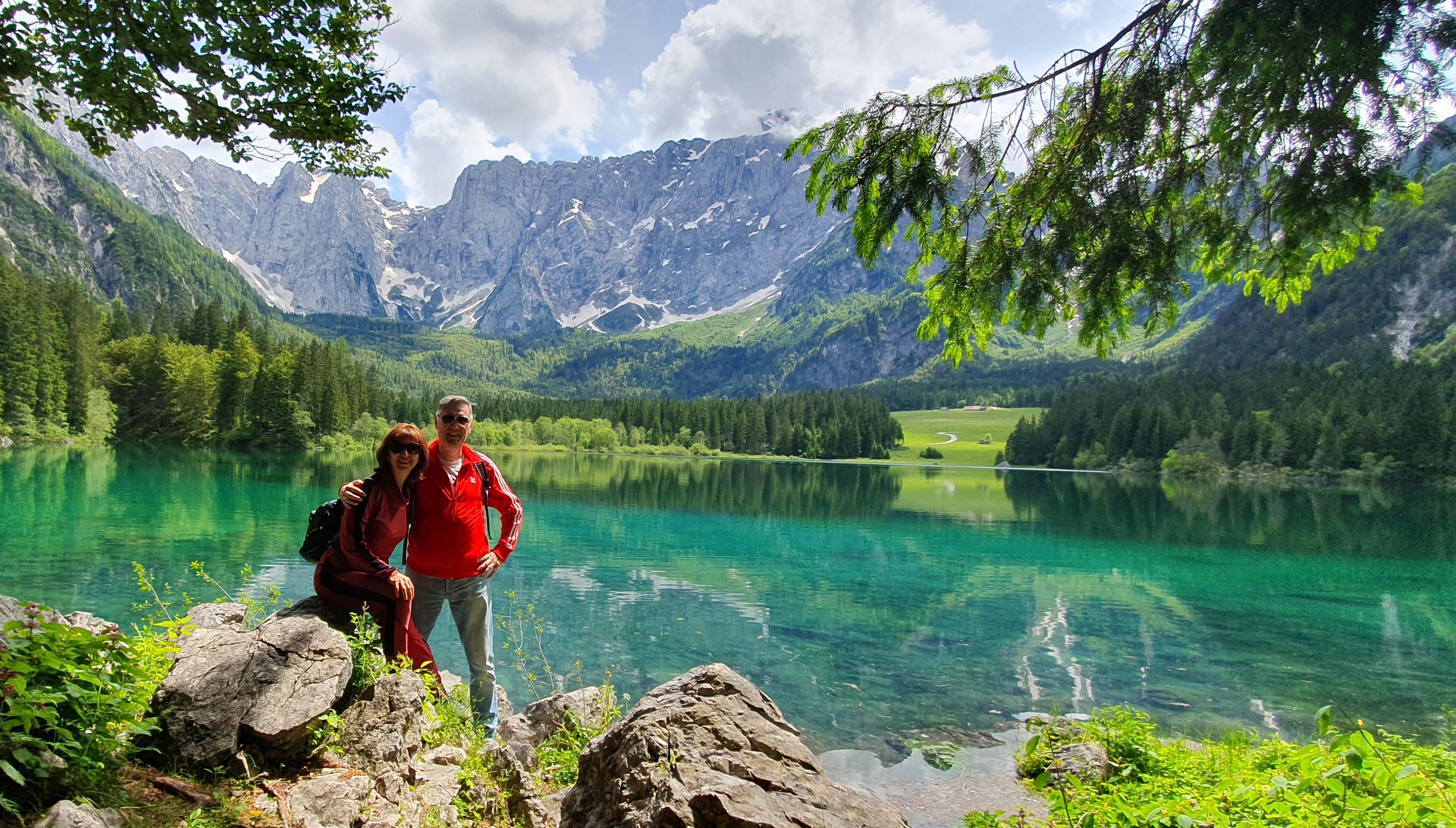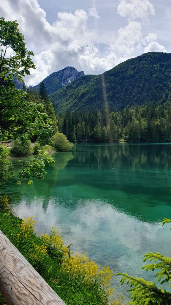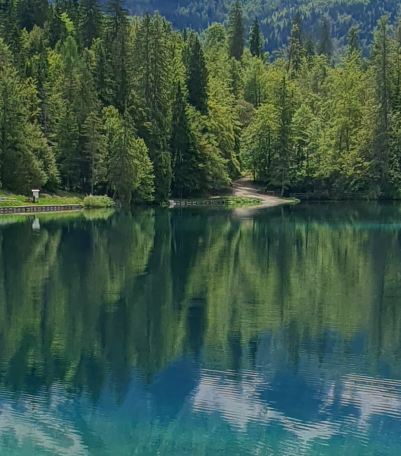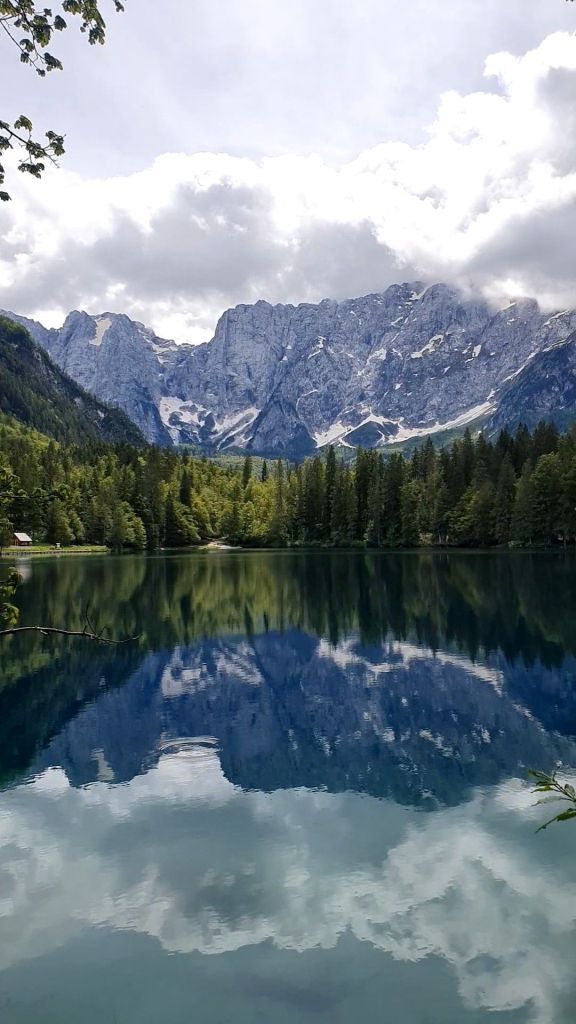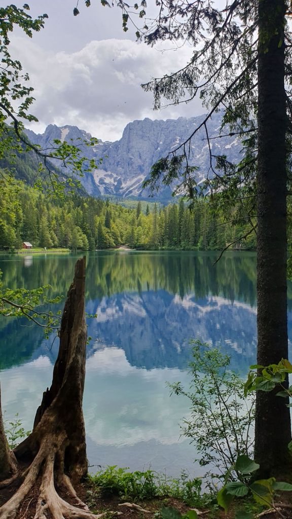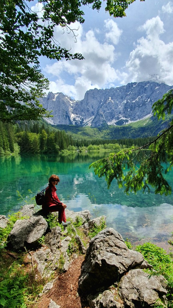 Srijeda je i 45 minuta kasnije, lako pronalazimo parkirno mjesto. Krećemo drvenom stazom uz rub stijene i prelazimo mostić. Ispred nas otvara se markantna stijena Mangarta sa zaostalim plohama snijega, a već sa sljedećim korakom i jezero Lago di Fusine Inferiore. Možda bi jezero bilo samo voda stajaćica da se u njemu ne oslikava svako stablo, svaki žlijeb Mangartove stijene i svaki oblačić, koji nas štiti od sunca, stoga ova voda stajaćica postaje un posto meraviglioso – slika za poster na zidu, naslovnica ljubavnog romana ili uvodna scena filma strave – oni počinju idilično.