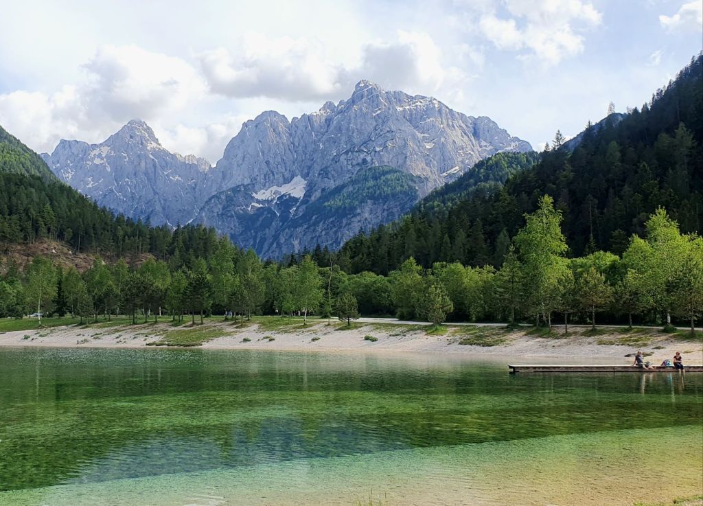 Pripremila sam se i znam da oko jezera vodi planinarska staza duljine 2 km. Nalazimo se na nadmorskoj visini od 925 m, a jezero seže do 25 metara dubine. Sive stijene pripadaju Mangartu ćiji vrh je na 2679 nadmorske visine, treći po visini u Sloveniji. Svaki je korak čudesan, svaki komentar suvišan.