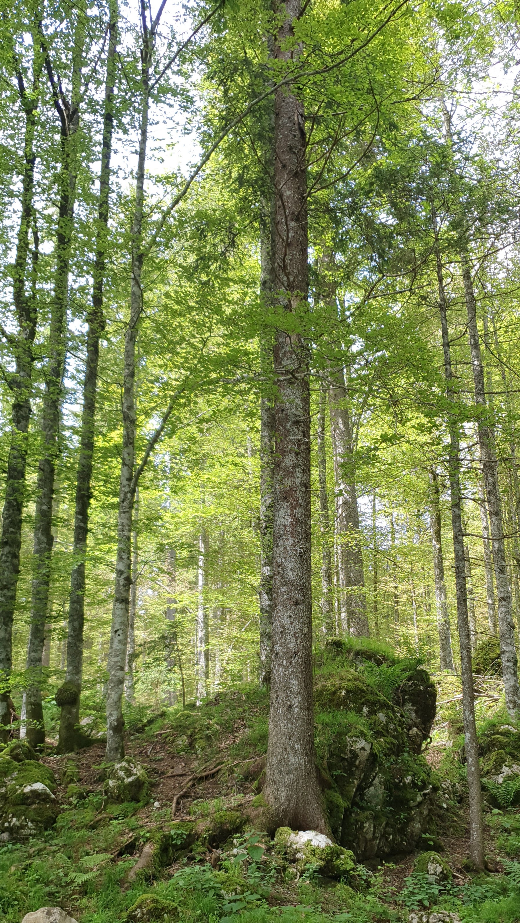 Prilazim jezeru za bolji doživljaj… Toplo je, a voda zove… Ma, najradije bih nastavila dalje, hodala kroz vodu, razmaknula stijene, dotaknula vrh Mangarta, produljila na drugu stranu kroz zelene smreke, no približavaju mi se patak i patkica, pa samo vadim mobitel.