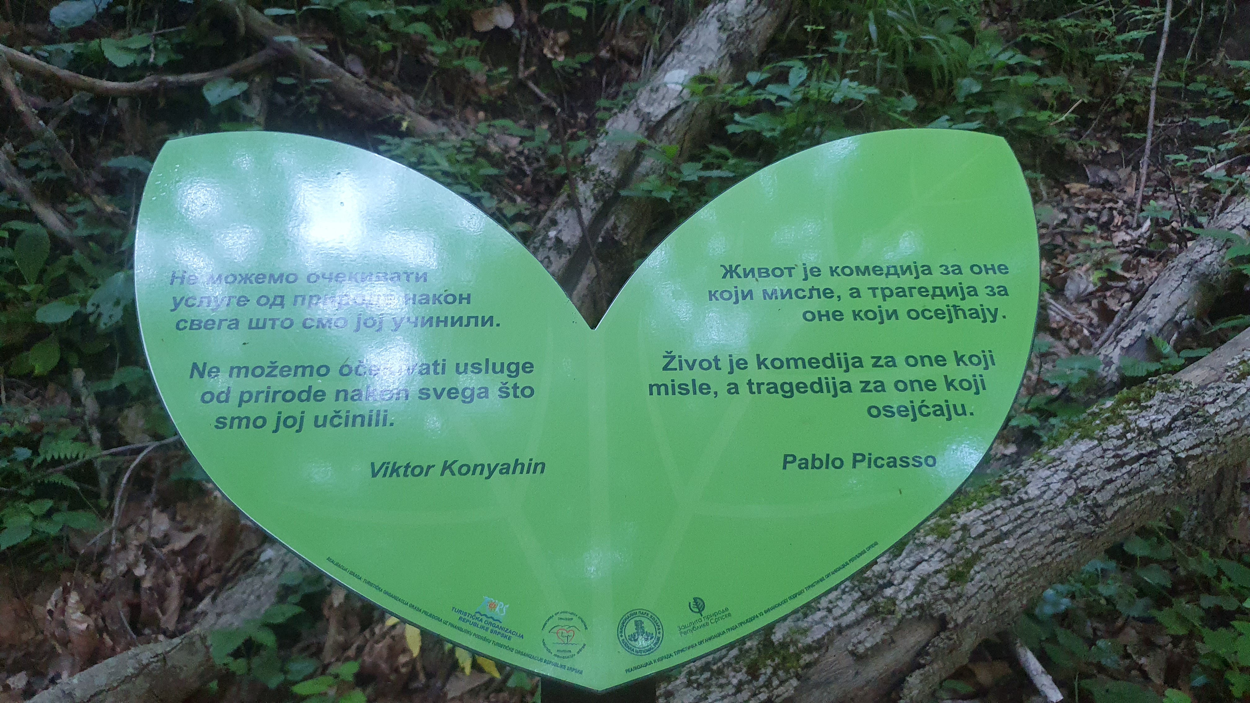 U zelenom srčeku pored slapa piše: “Život teče – tko ga ne stigne, ostaje sam.” – Maksim Gorki.