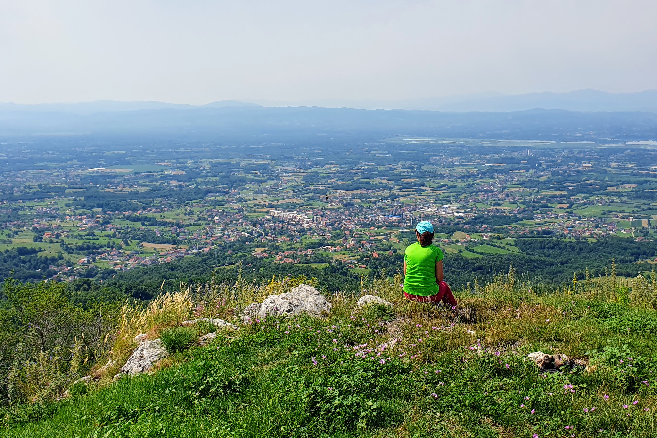 Polijegali smo po proplanku Kozaračkog kamena s pogledom na mjesto Kozarac ispod nas i Prijedor desno dok vjetar pirka…