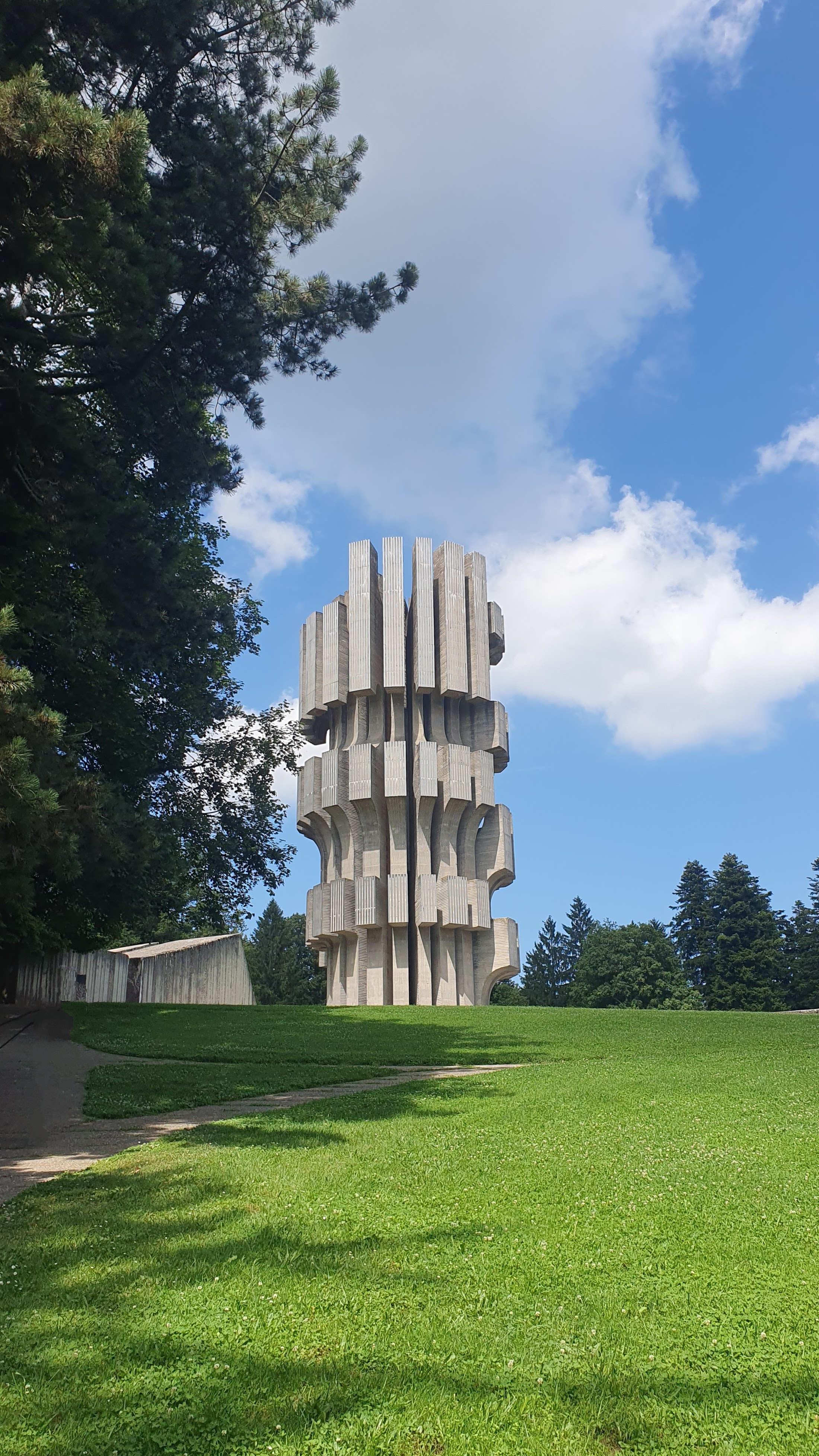 Idemo prema platou Mrakovica (806 mnv), do spomenika žrtvama Drugog svjetskog rata ovog područja. Bila sam ovdje davno s osnovnom školom, bilo je jednako vruće i sumorno. Na savršeno pokošenoj travi strši prošlost od grubog betona, i tenk sa strane kao svjedok nemilog vremena.