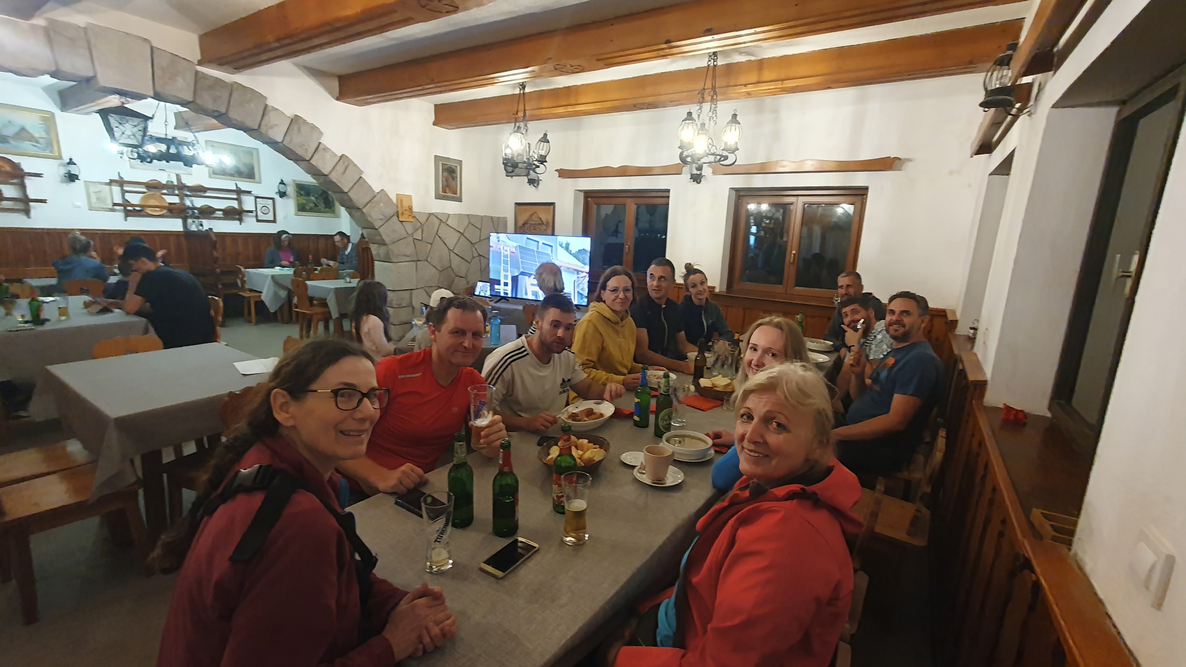 21:30 “Dobra večer, Anice!”, pozdravlja me domaćin u Tičarjevom domu, na najvišem cestovnom prijevoju Vršič, kojeg sad prvi put vidim. Kasnije ću saznati da se zove Zoran i da je porijeklom iz Makedonije. Dok nas domaćica uvodi u uredne spavaone uz obavezno: “Dobro došli, izvolite!”, Zoran nam toči piće dobrodošlice. “Reci, jesu tvoji ljudi gladni?” – “Neki bi rado večerali, ako vama nije prekasno.” – “Nema problema, vi ste sad naši gosti!”, ne mogu vjerovati. Uz takvu dobodošlicu svi nešto naručujemo, a daje nam i žetone za toplu vodu, koji se inaće plačaju. Neki time nisu zadovoljni, jer sad pada u vodu ekonomsko/ekološko tuširanje u dvoje.