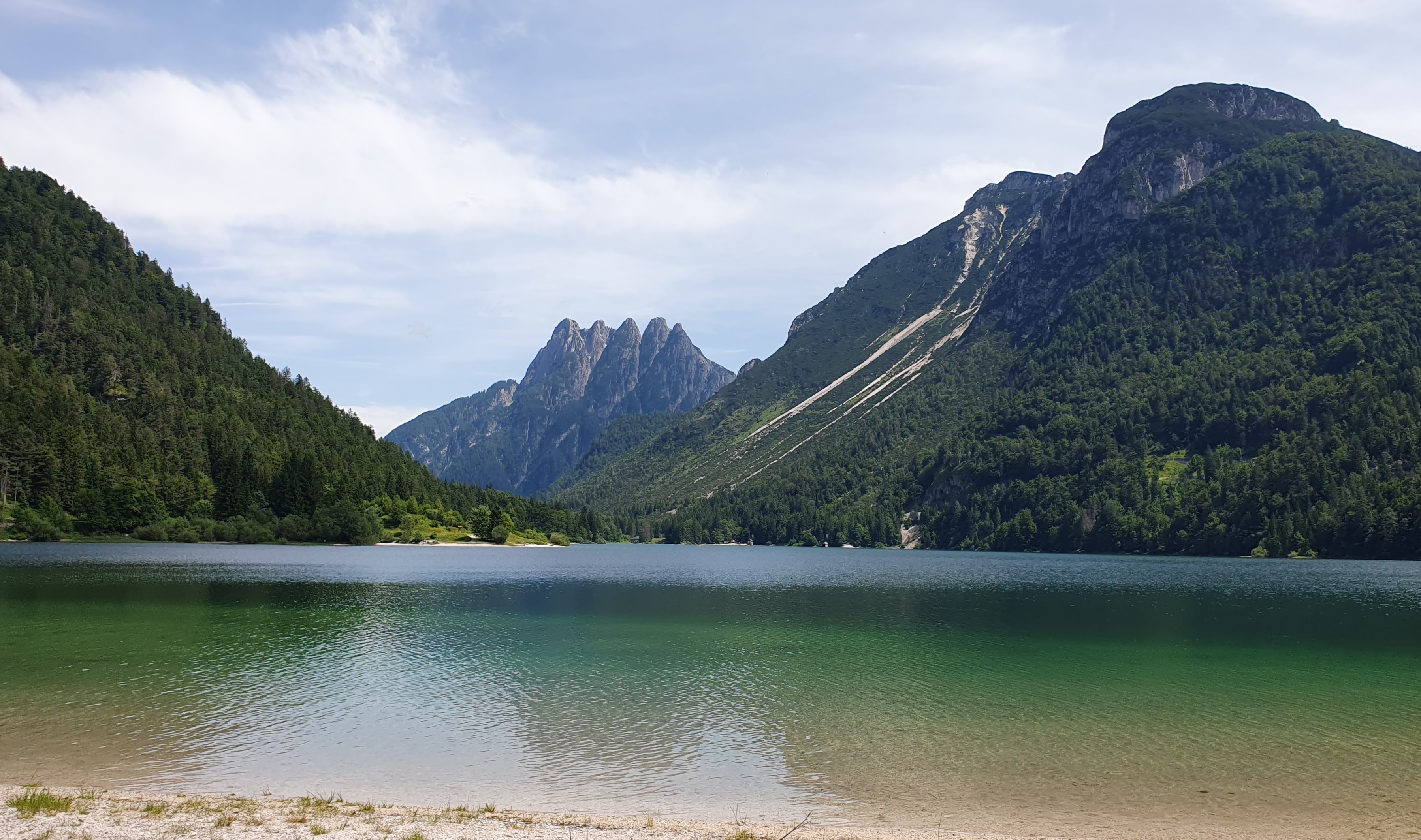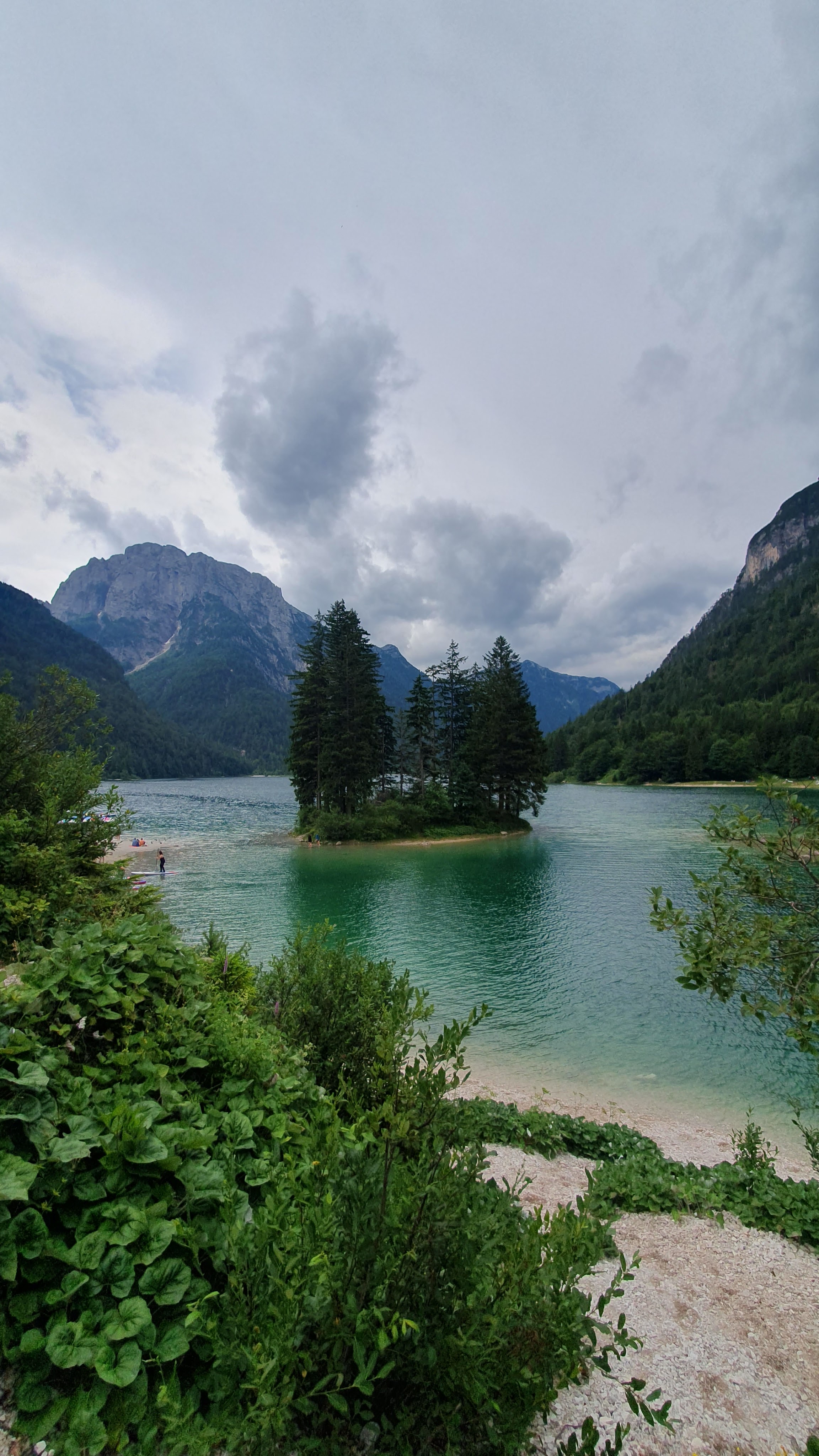 Ledenjačko jezero Predil je puno više od očekivanog. Okruženo visokim planinama obraslim u guste borove šume djeluje egzotično. “Hoćemo napraviti krug oko jezera?”, neminovno je pitanje, a “Daa!”, neminovan odgovor. Stoga krećemo pored plaže pune potencijalnih kupaća, kroz ekstra bujno raslinje nalik đungli i ulazimo duboko u šumu, zatim se penjemo visoko iznad jezera markiranom planinarskom stazom i spuštamo proporcionalno strmo do vode, gdje mali otočić priča svoju legendu… I najvažnije – planina se reflektira u vodi.