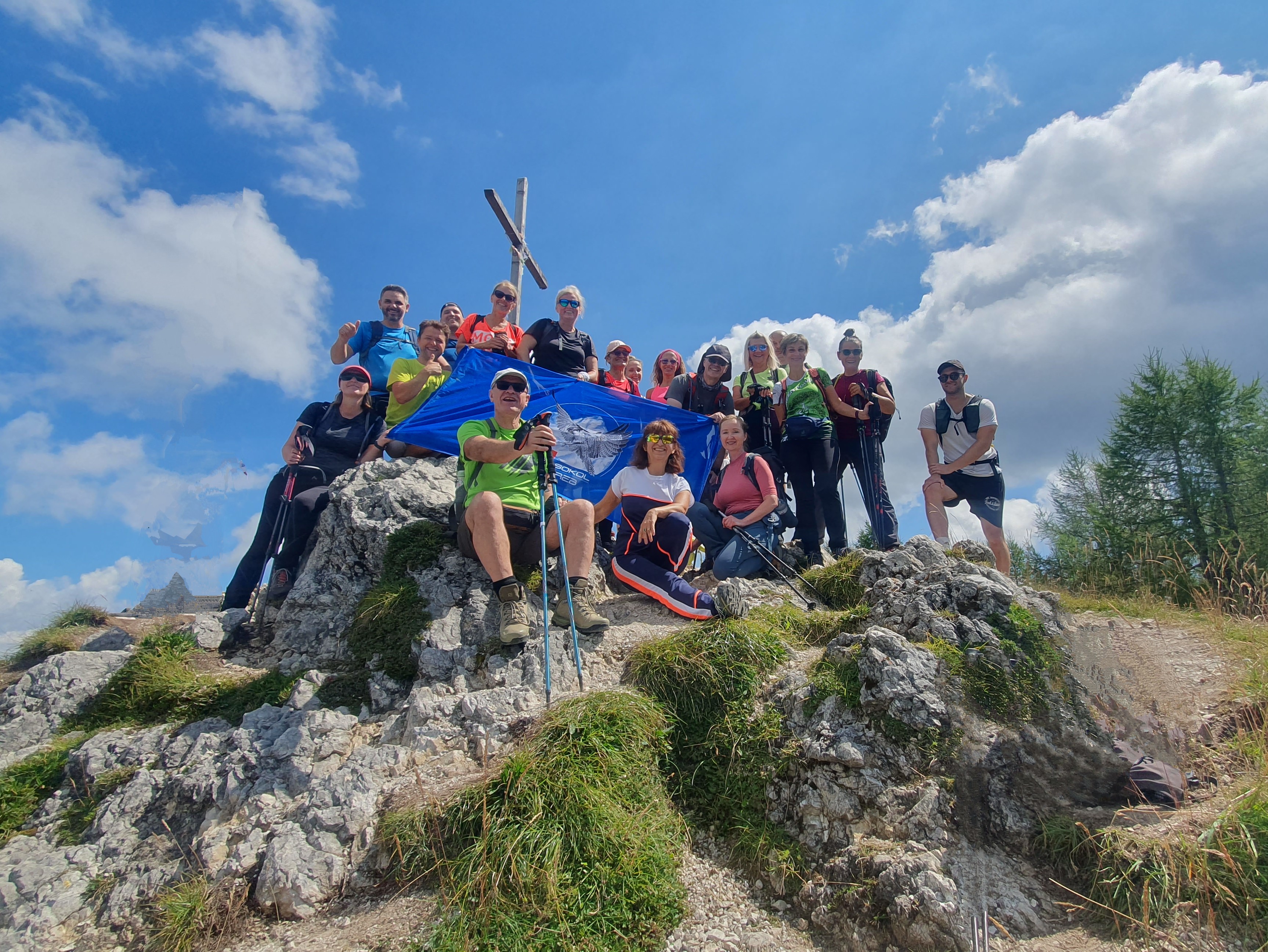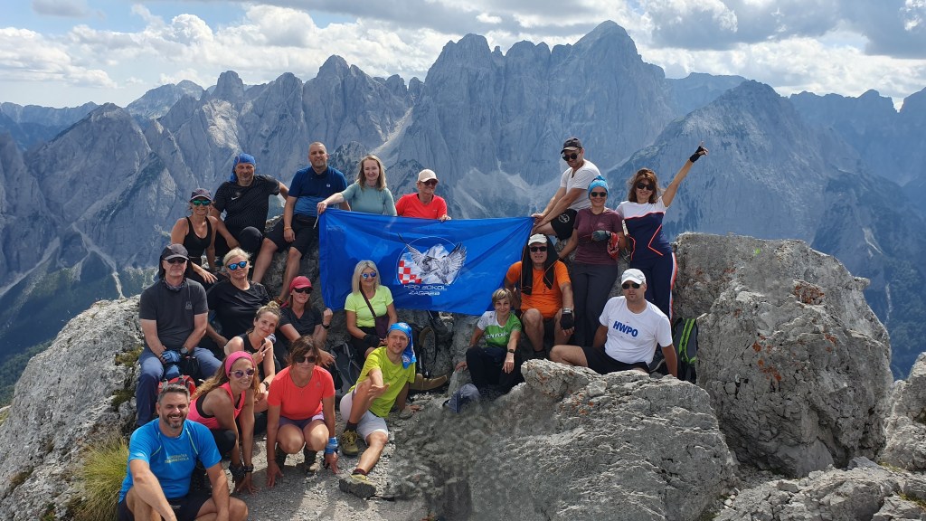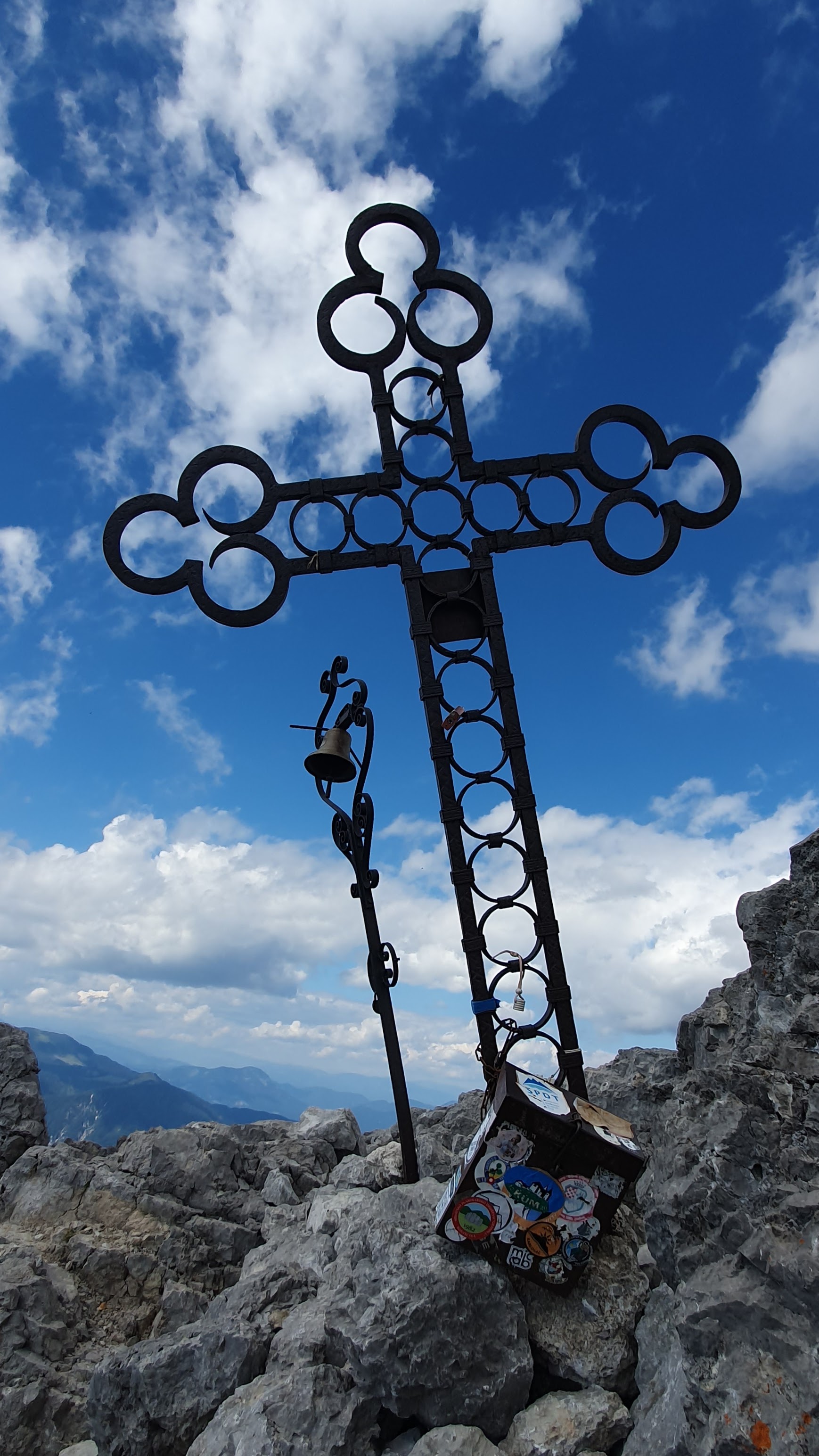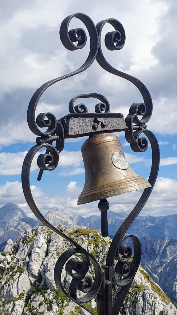 Stjenoviti vrh obilježen je stiliziranim križem i zvonom. Okružuju nas alpski velikani poput Montaža i Viša, nekoliko oblaka na nebeskom beskraju i sveprisutna sreća.