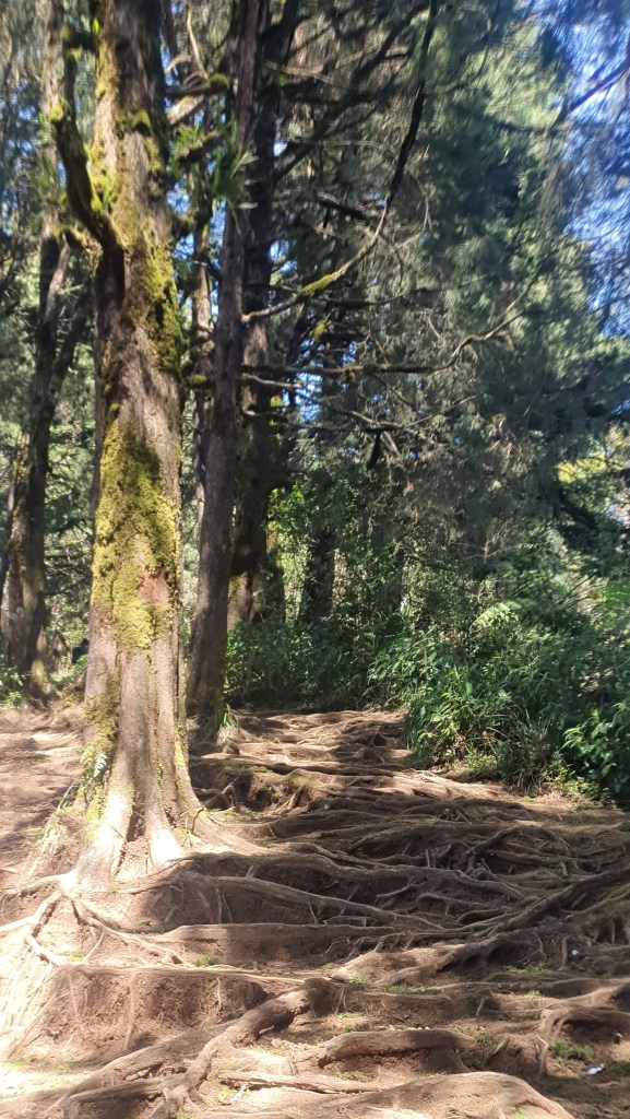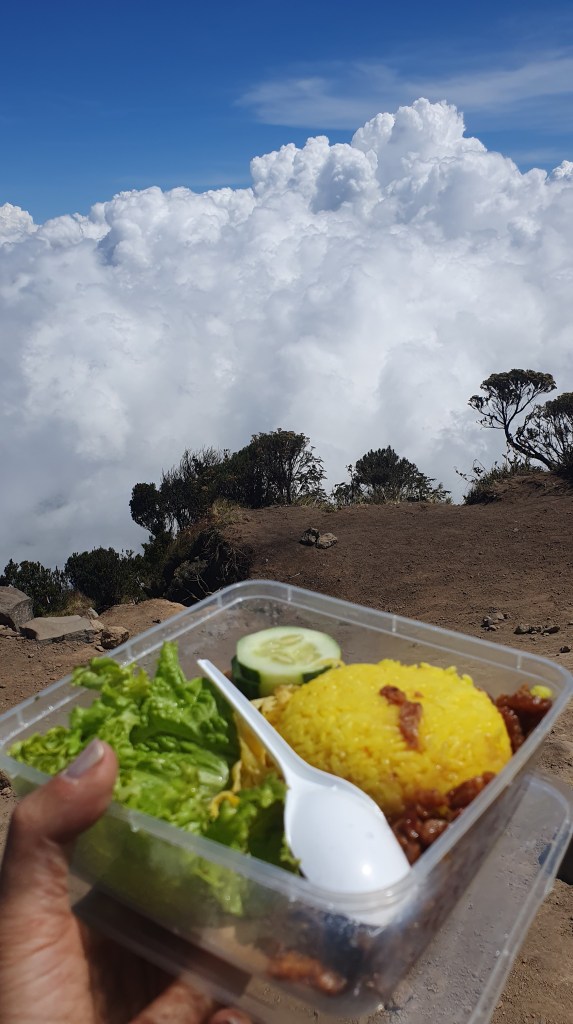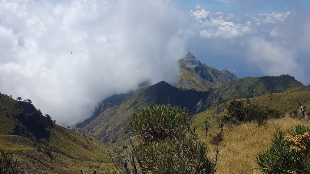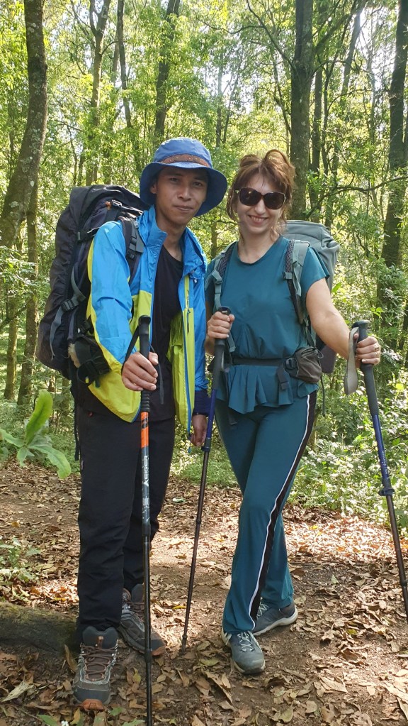 Novo jutro, novi izazov: ugasli vulkan Mont Prau (2590 m). Vodiči su u japankama – danas smo bez brige. 🙂