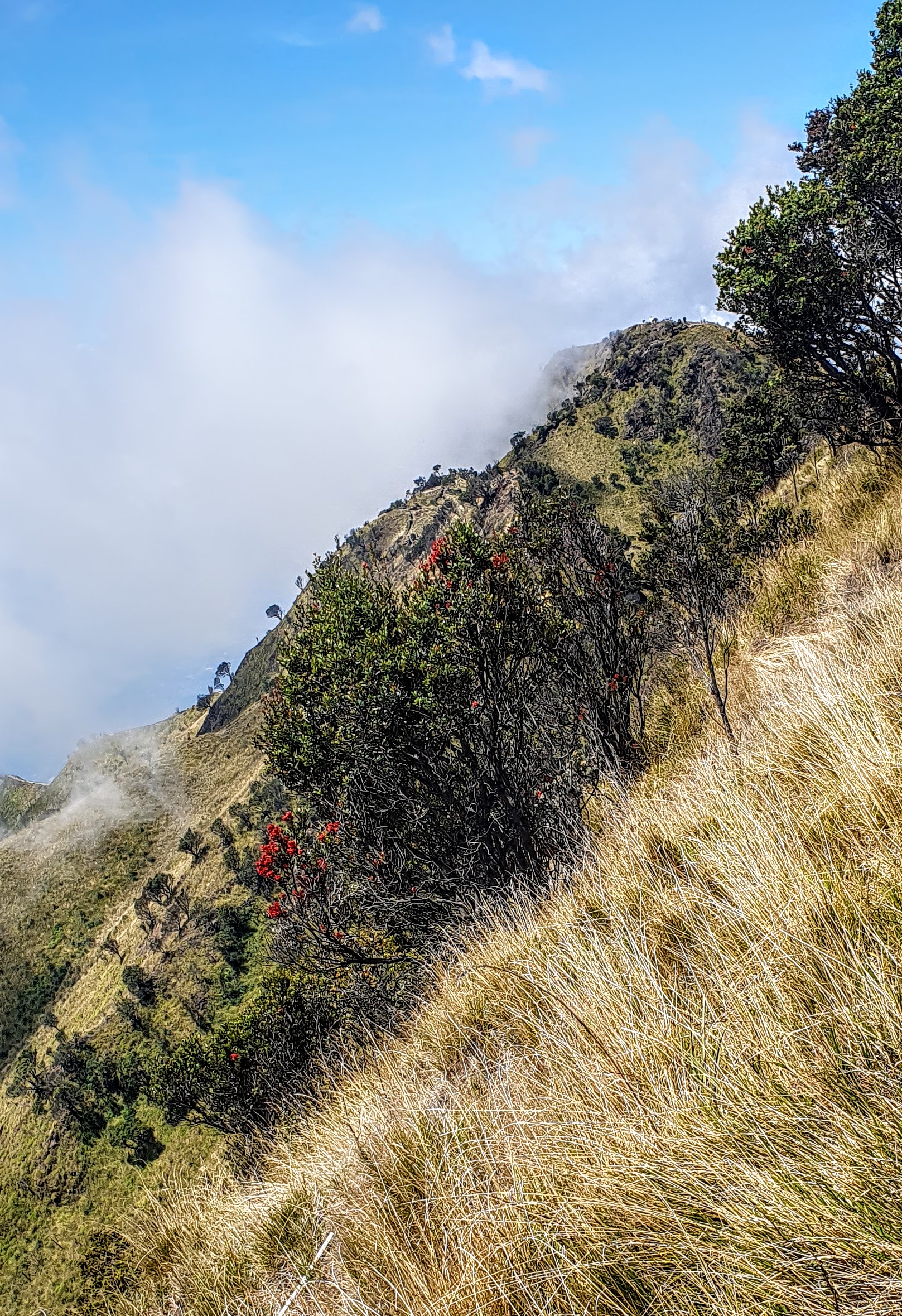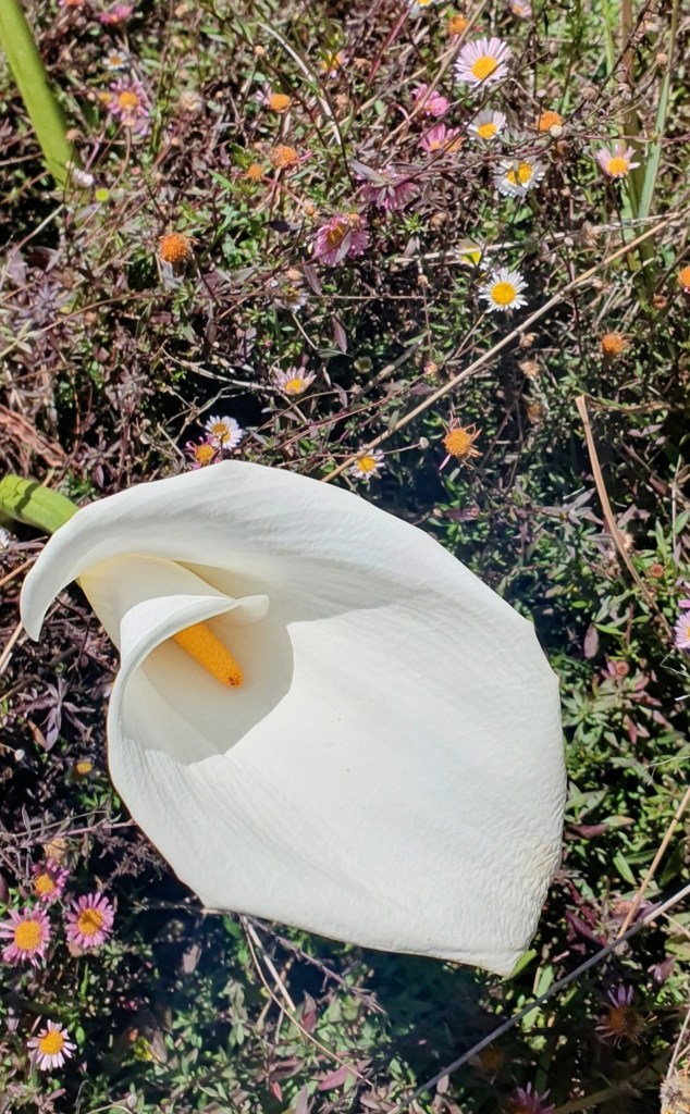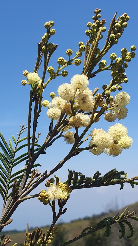 Nakon uspona odmaramo na vrhu i nastavljamo dalje travnatom ravnicom uz stabla mimoze, uz sitno cvijeće nalik tratinčicama i savršene bijele kale – ne mogu vjerovati da rastu prirodno ovdje u divljini. Idilično!