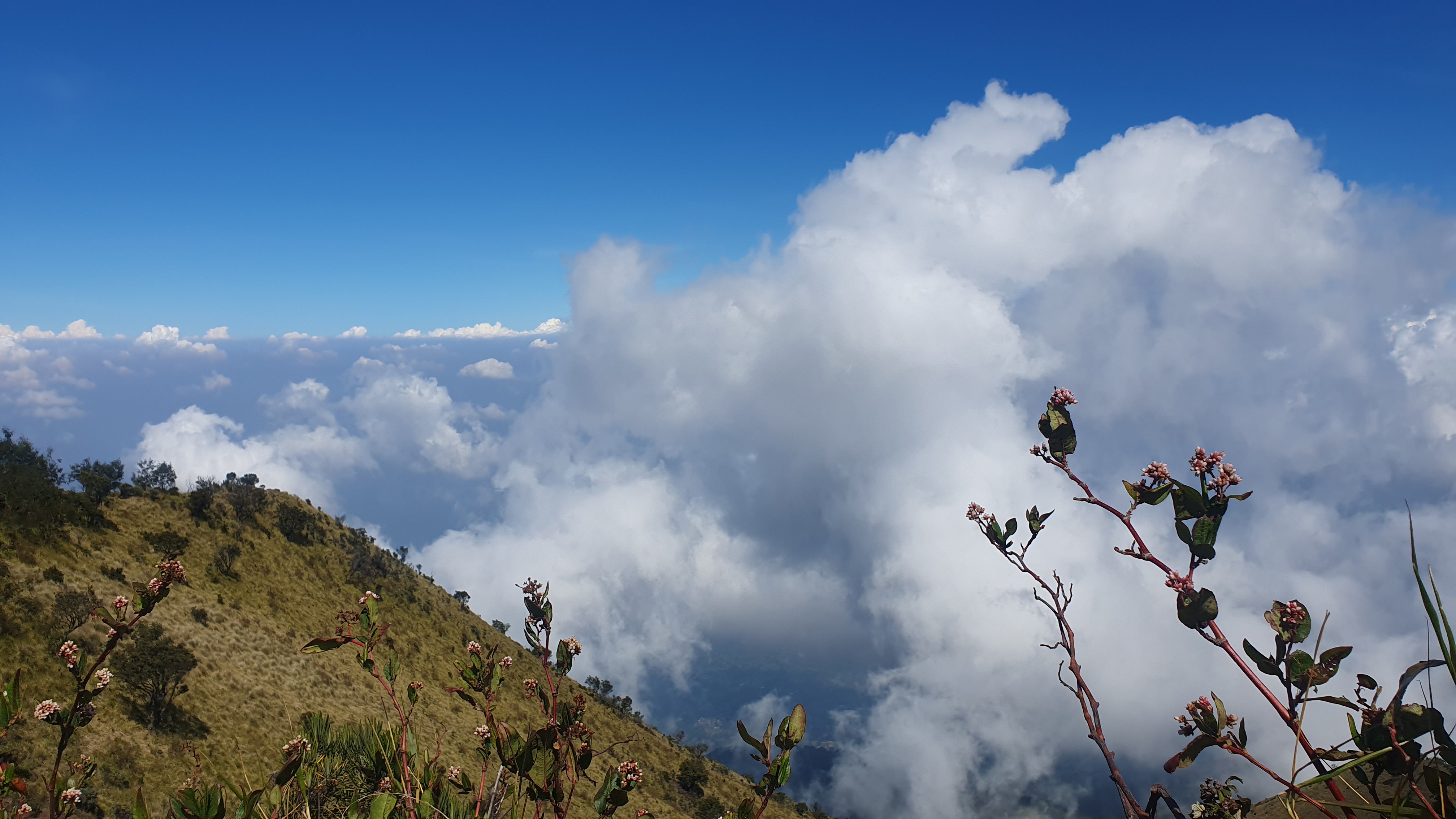 Na vrhu je zaista vrhunski! Vizure planina kakve moje oko još nije vidjelo i sretna sam što sam tu. Bijeli dim iz Merapija dodatno dekorira horizont, već sam zaboravila da su vulkani zapravo opasni.