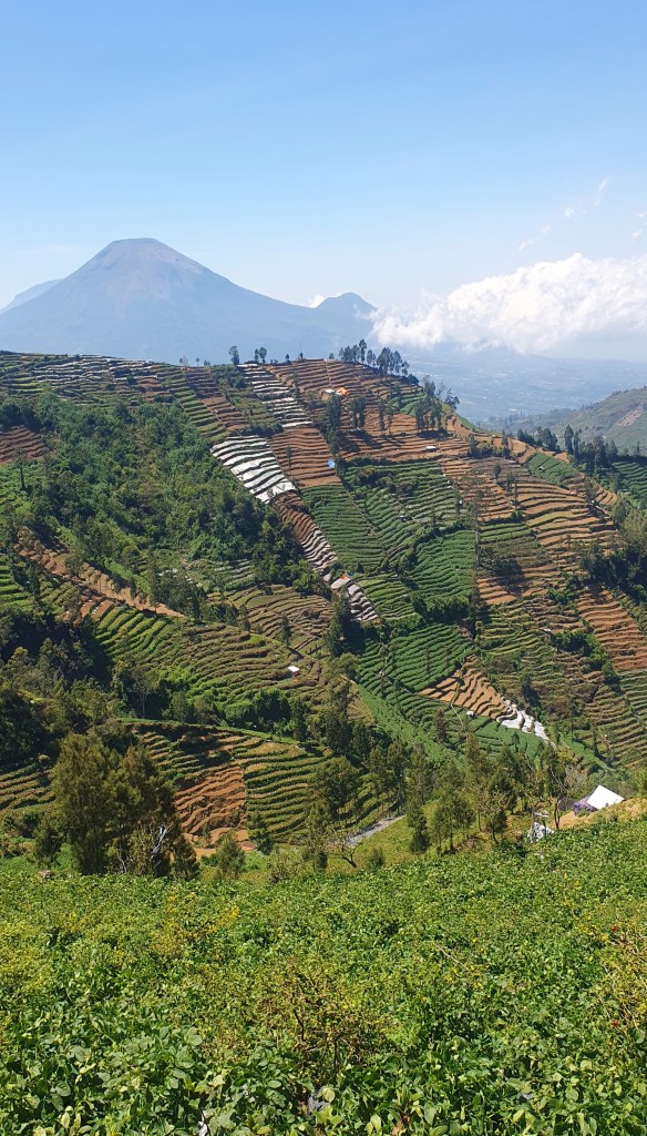 Vozimo se pored nepreglednih polja i nastavljamo s ruksakom na leđima po bezbroj zemljanih stepenica pored obrađenih terasa krumpira, zelja, mrkve i nekih nama nepoznatih kultura. Jedva dižemo noge. Merbabu je ostavio traga.