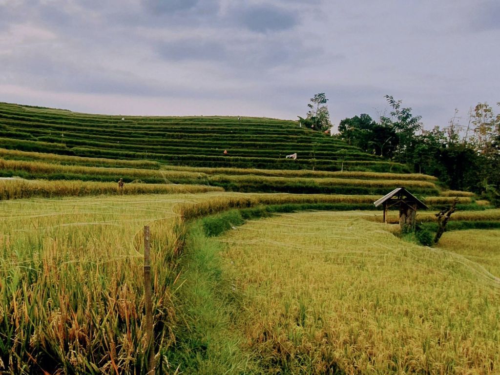 Ovako smireni šećemo rižinim poljima i pratimo odlazak sunca sa horizonta, jedna žena još radi u polju, jedan muškarac odvozi na motoru ubrano, promatram povijene rodne klasove riže, koja vijekovima osigurava preživljavanje ovim skromnim ljudima, a Sultan za to vrijeme fotografira naše putovnice da zatraži posebnu dozvolu za uspon na aktivni vulkan Ijen. OMG!