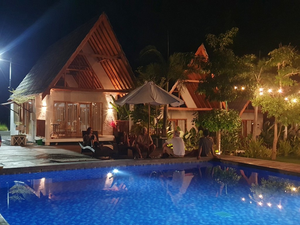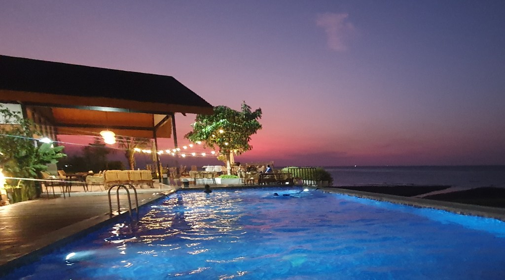 Oko šest sati navećer stižemo u turistički resort na obali Javanskog mora, ovdje ćemo se zadržati čak tri dana. Ozarenih lica jurcamo uokolo. Stilizirani bungalovi, restoran na terasi, bazen sa šarenim tropskim ribama i jedan veći za nas, sve uokvireno raskošnim biljem, a s pogledom na Javansko more. O, da! Najprije kupanje u bazenu. A sad idemo istražiti okolicu. Ulica mračna bez nogostupa, poneki kamion, koji ide dalje, jedini smo turisti ovdje. Neke je razveselio veliki market, a neki smo pronašli prostrano dvorište, gdje gazdarica čeka baš nas, a gostoljubiv domaćin širokog osmijeha shvaćajući da ne može s nama razgovarati poziva mobitelom prijatelja iz sela, koji barem malo govori engleski, da uskoči. I tako sjedimo opet bosi na terasi, jedemo tijesto s ljutim umakom sa ili bez piletine. Brišem suze, nos i znoj s čela, sve standardno odlično.