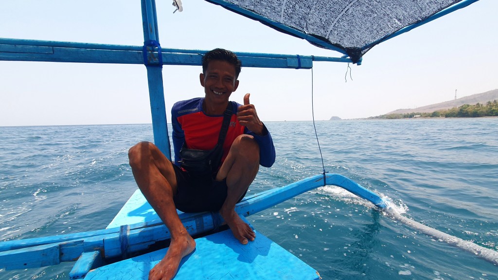 Zaustavljamo se, skiper baca kamen-sidro i sugerira pokretom ruke da ovdje možemo skočiti – plivati – roniti. I tako klizimo toplim Javanskim morem (30 C) i s maskom za ronjenje tražimo tropske ribice. Najljepše su mi sitne plave, a ima i bezbroj Nema na područjupotopljenog broda. Darko nam izranja svakoj po koraljić za sjećanje. Penjemo se i plovimo dalje pored uzgajališta riba i tako dva sata.