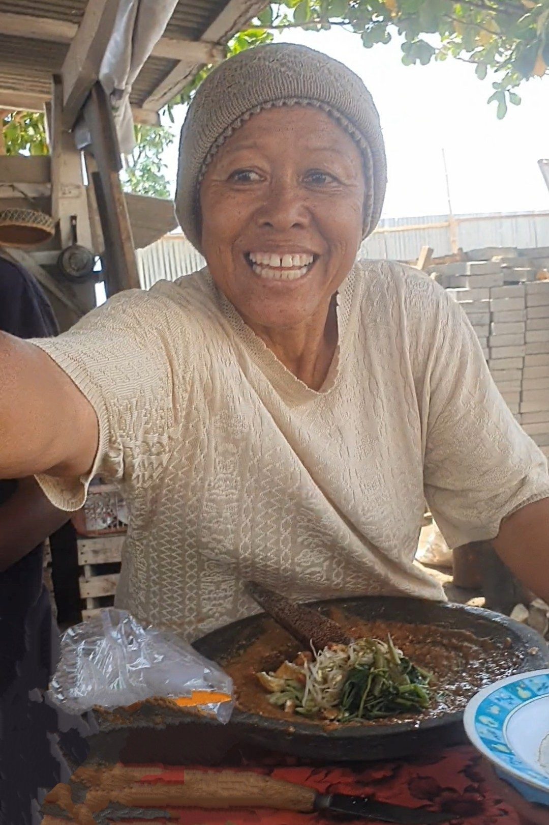 Izlaskom iz brodice hodamo vrućim plićakom, te preko pješčane plaže brže bolje u hlad. Pretoplo je za bilokakvo zadržavanje, dva stupnja smo ispod ekvatora. “Come, come!”, poziva nas skiper u hladovinu skromnog kioska odmah uz plažu i nudi lokalnu hranu. Darko i ja smo najhrabriji i pristajemo prvi da nam starija gospođa, vrlo simpatična, nekako profinjeno nježna, na tradicionalan način pripremi obrok. Pomno pratimo (iz radoznalosti, ne iz straha) njen rad, zapravo snimila sam cijeli postupak, četiri minute ravno, – u umak od kikirikija dodaje špinat, klice, tofu, krastavac i još nekoliko meni nepoznatih sastojaka. Slasno smo to Darko i ja riješili te tako motivirali još neke! Mišelinovu zvjezdicu neće dobiti, ali nama daje autohtoni ugođaj, koji cijenimo i pamtimo.