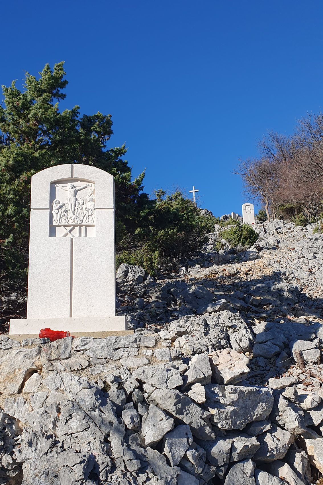 U stijenu uklesane stepenice vode pored posljednjih postaja do križa i najboljeg pogleda danas.