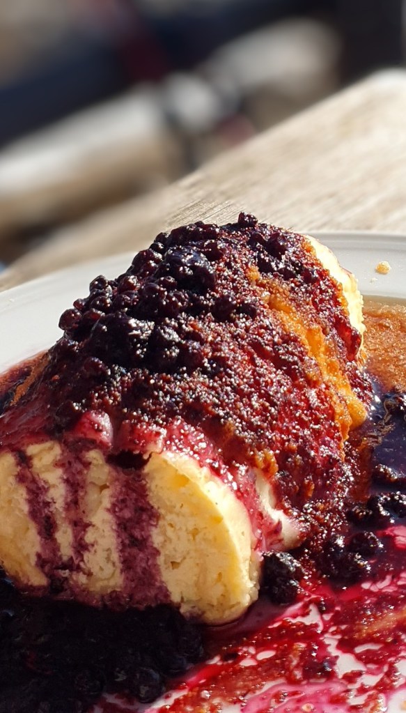 Zauzimamo jedina slobodna mjesta na terasi i hitamo naručiti hranu i pića na šank. Ima i unutra stolova, no niti ne pomišljamo ostati, jer vani na suncu je baš ugodno toplo.