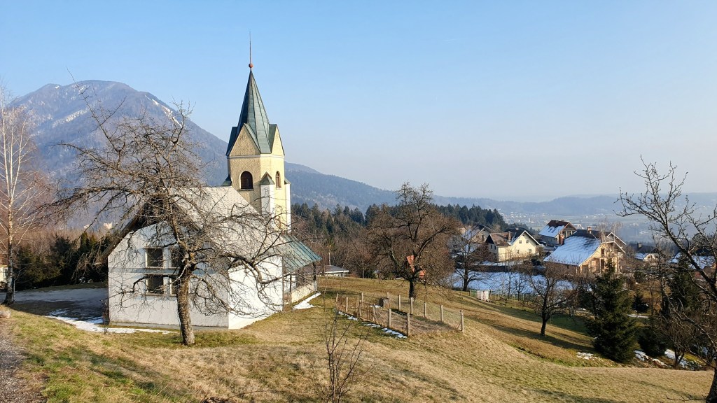 Parkiramo se kod crkve u Brezju pri Tržiču, a zapravo ispod Kriške gore (Tolsti vrh (1715 mnv) i Kriška gora), koju smo obišli krajem godine, također po snijegu. Makadamska staza uvodi nas u šumu. Malo je snijega, no puteljak je okovan ledom i male dereze su dobrodošle za siguran korak.