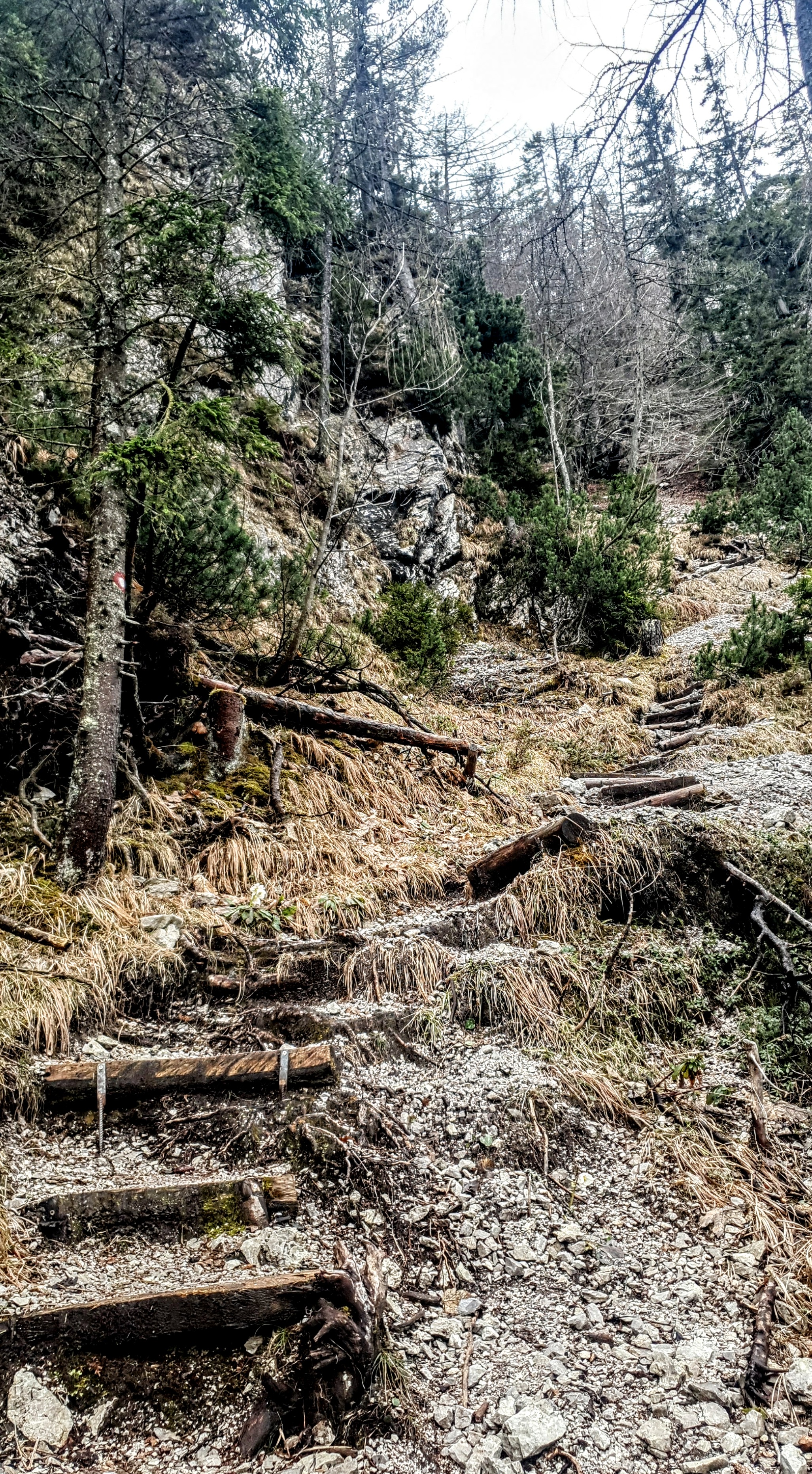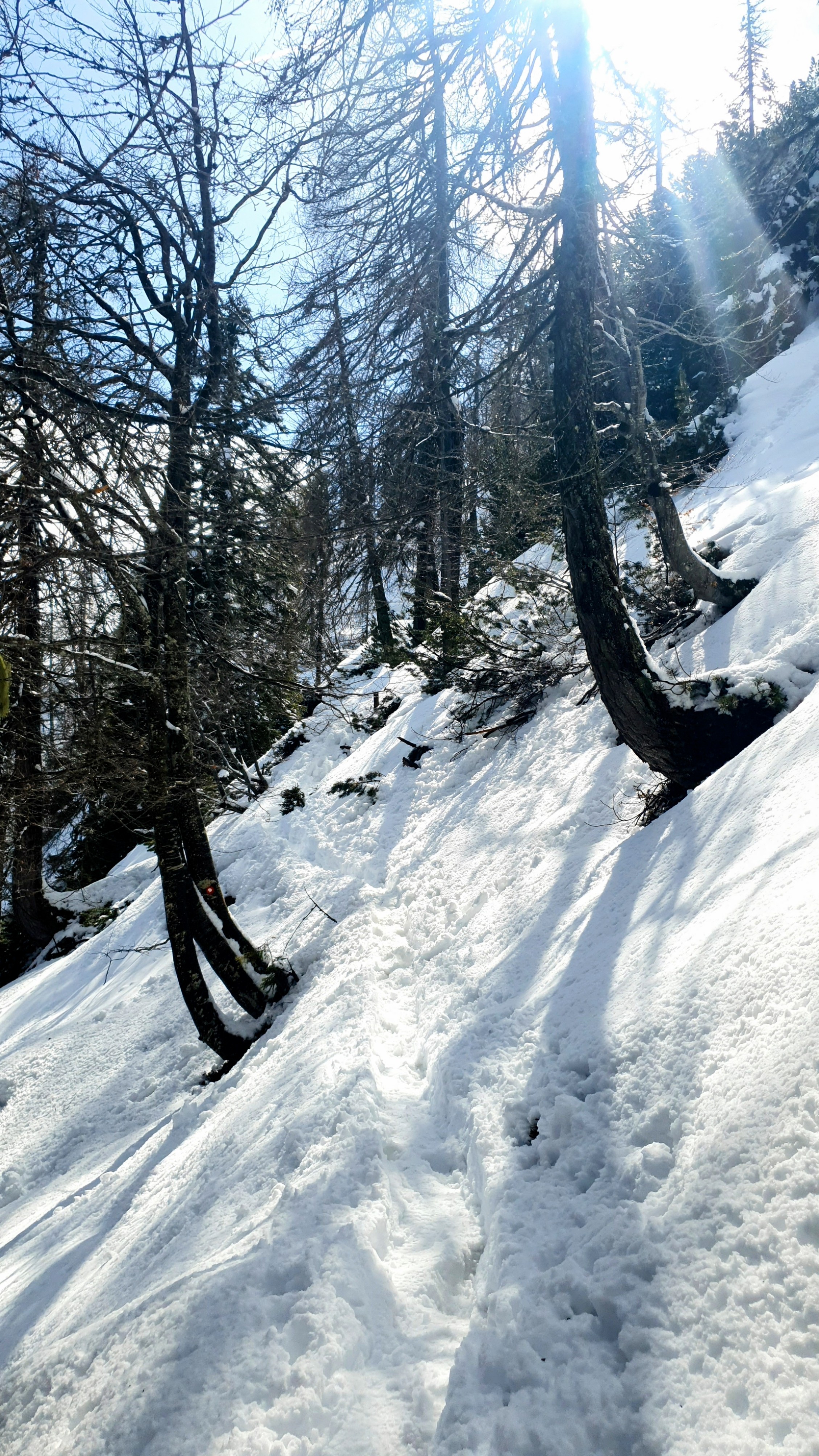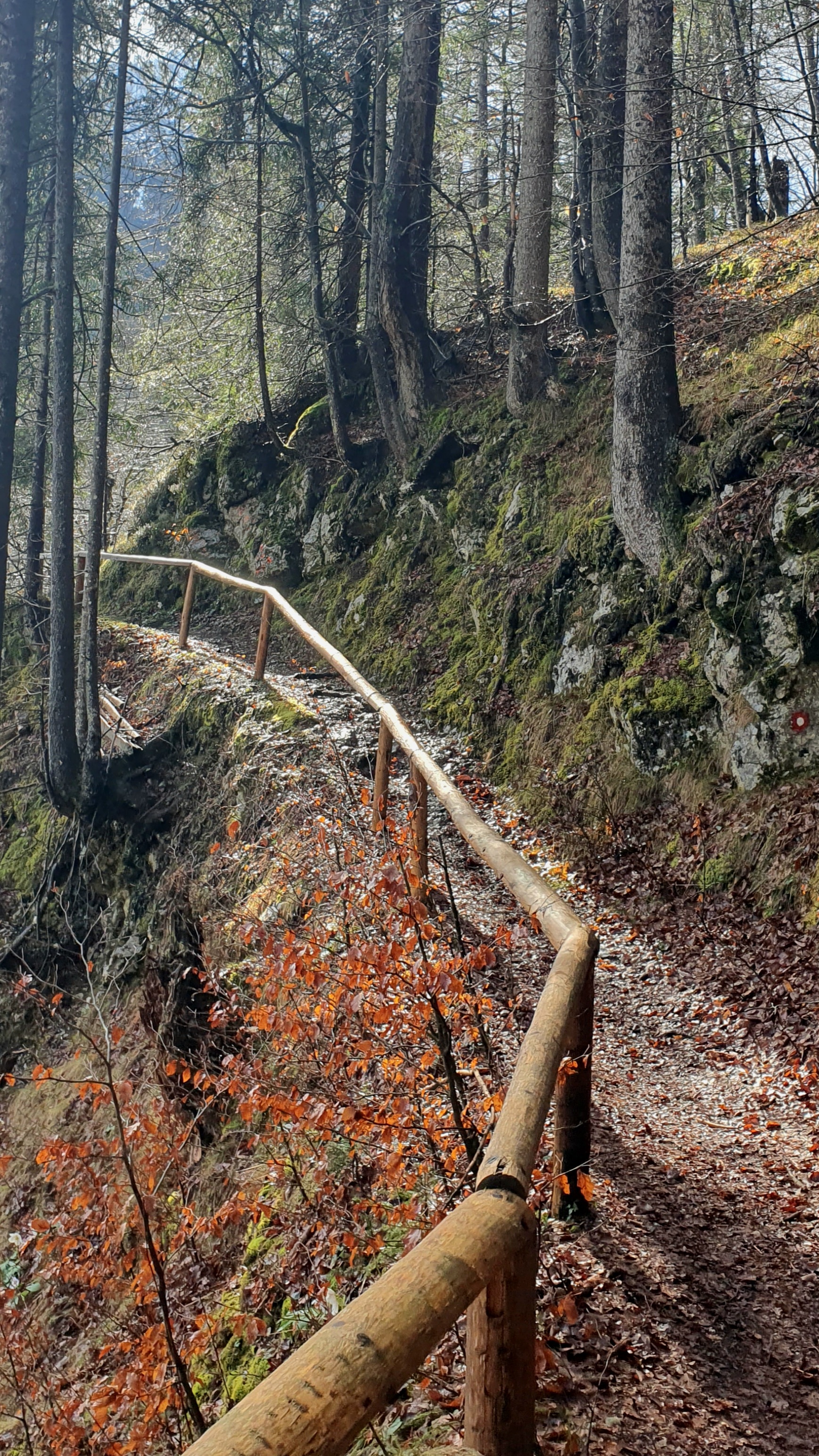 Staza započinje mostom, nastavlja uz urbanu drvenu ogradu, krivuda uz aleje vrijeska u punom cvatu, uz rasute kukurijeke po šumskim prostranstvima – idilična i raznovrsna, a ujedno je strma za poludit. Pitam se kako ćemo se neozlijeđeni spustiti po ovom vlažnom isprepletenom korijenju i kamenju prekrivenom razmočenim lišćem u tvrdim gojzericama, koje nosimo zbog dereza. Moguć je povratak drugim putem, ako snijeg dozvoli, tko zna.