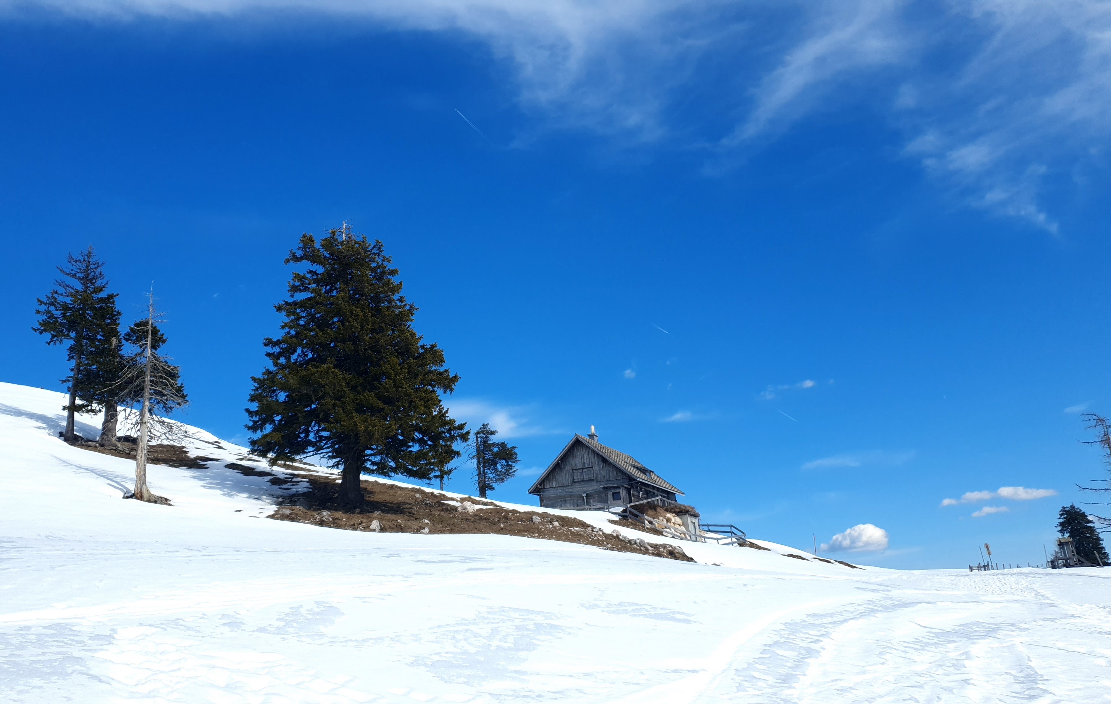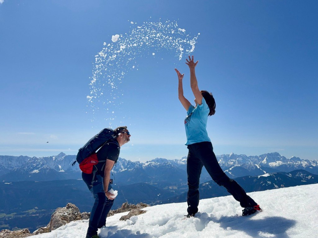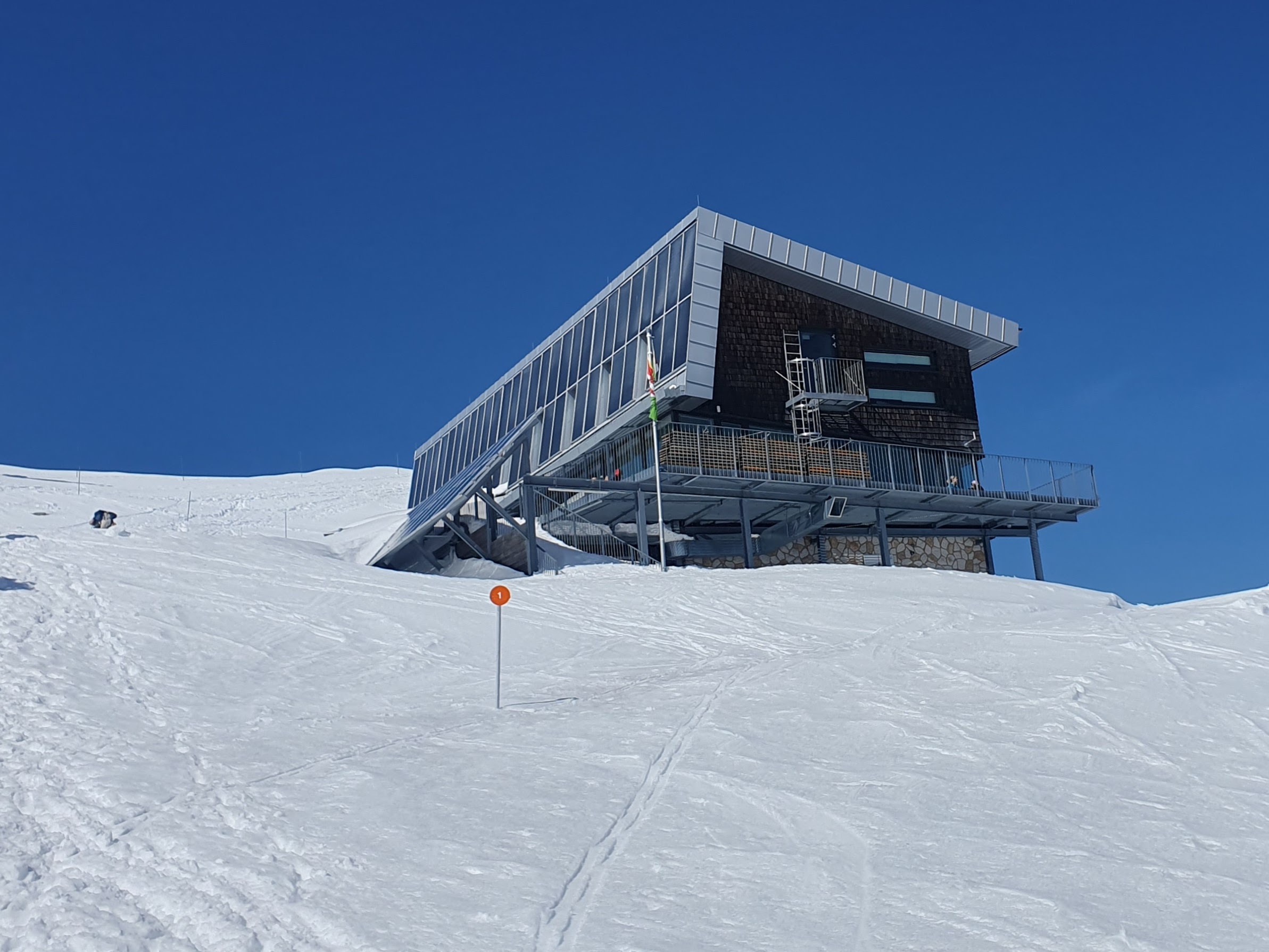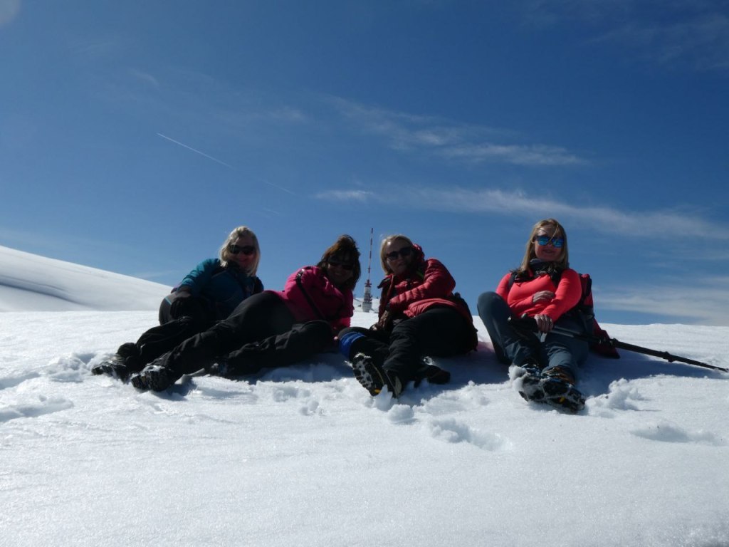 Dugo se ovdje družimo na terasi. Rijetko se ovoliko zadržavamo u mirovanju, a rijetko je i ovako ugodno toplo u planini, a gotovo nikad na snijegom obloženom dvotisućnjaku. Malo ćemo se predugo zadržati i dobiti boju na licu kakvu nismo željeli – izgorjeti.
