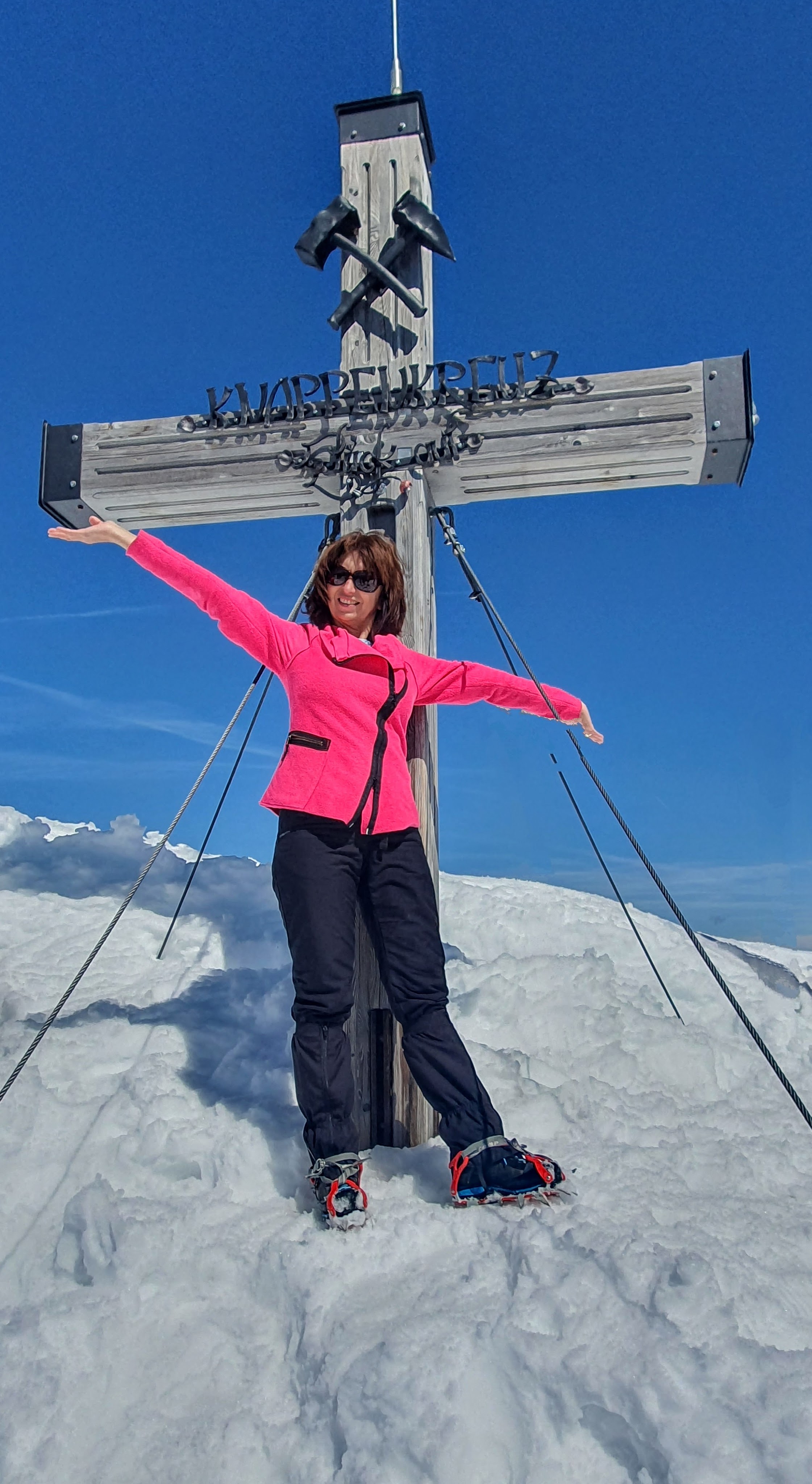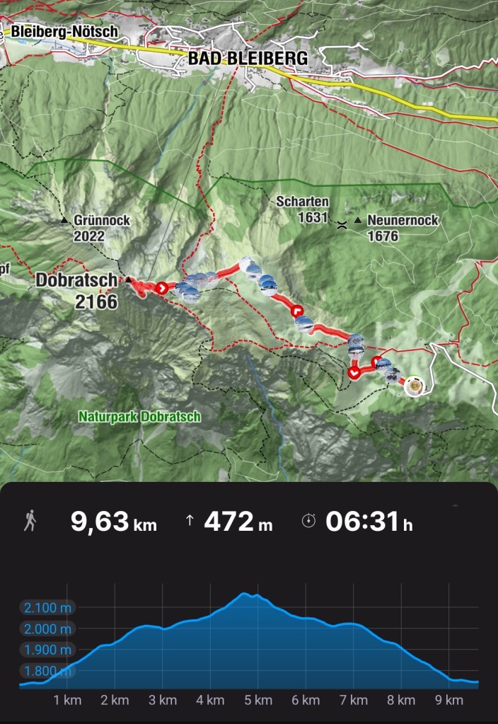 Idemo polako do vrha Kuhriegel, poznatiji kao Dobratsch ili u slovenskom jeziku Dobrač. Do njega nas vodi jedan uski greben, a vrh je obilježen velikim stiliziranim križem – poprište najčudnijih fotografija, koje neću staviti.