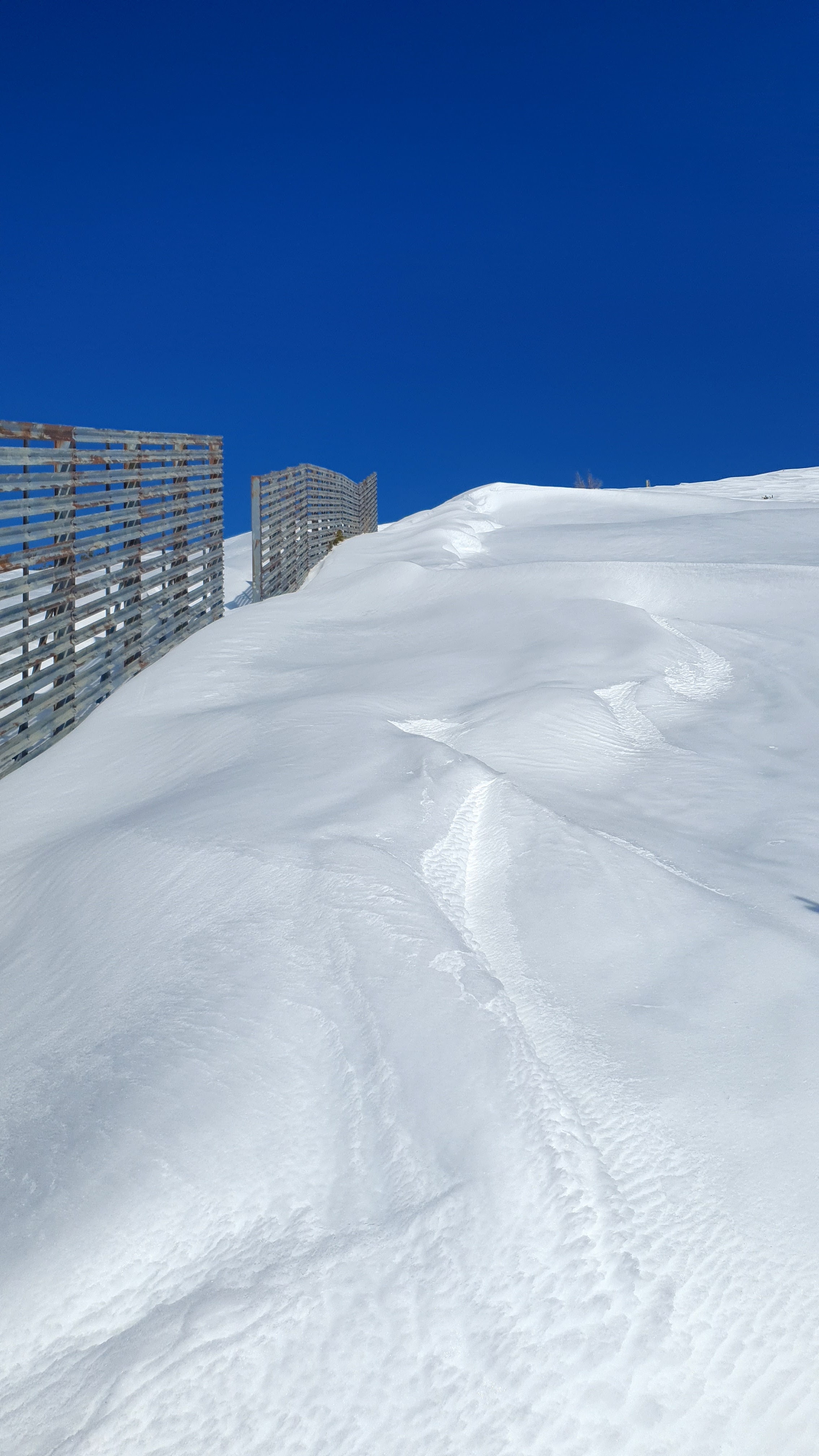 Ove fotogenične ograde služe da zaustave snijeg nošen vjetrom i spriječe lavine. Danas je lavinska opasnost minimalna, 1.
