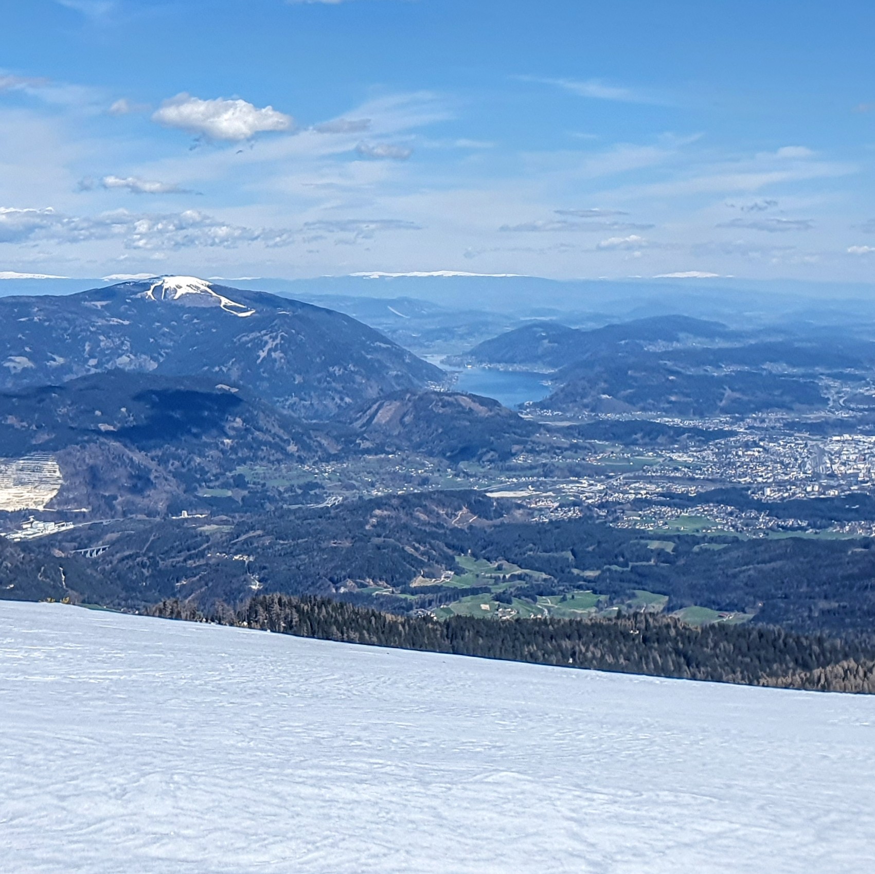 Povratak. Ispod nas je grad Bad Bleiberg, pola sata kasnije jasno vidimo Villach te jezera Ossiacher see i Worther see.