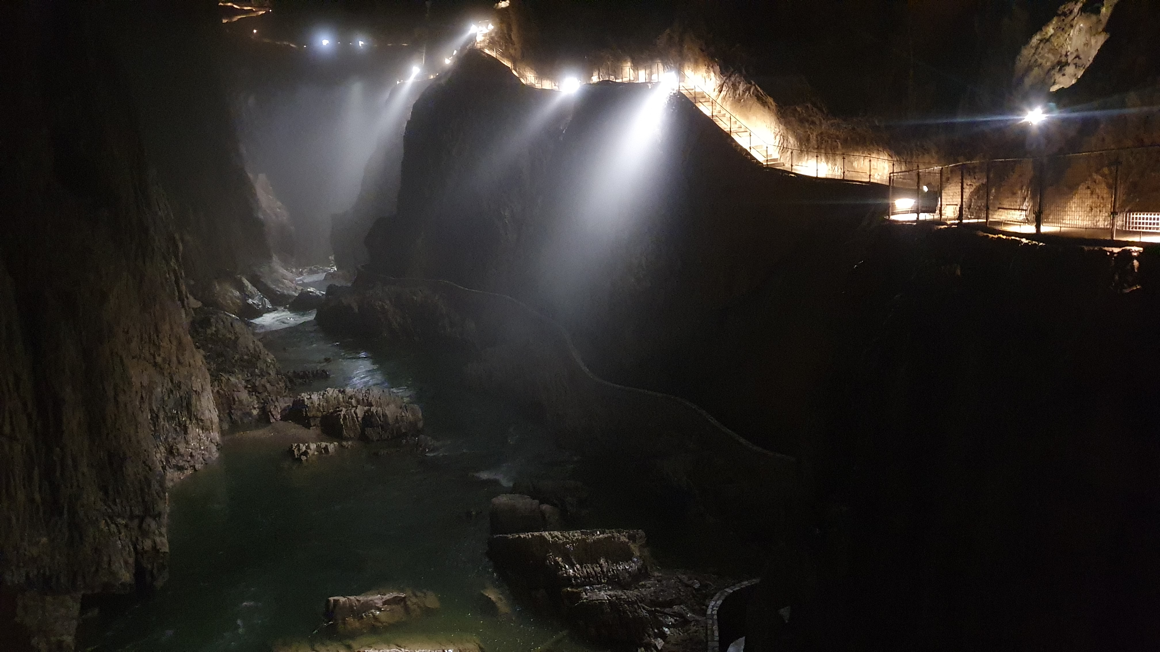 Podzemni kanjon dug je 3,5 km, širok 10 – 60 m, a visok do 140 m. Pažnju nam privlače stepenice uklesane u stijeni, a povremeno osigurane sajlom i pitam može li se tamo proći. “Ne, nikako. Njima su se služili samo prvi istraživači ovog prostora.”, odgovara vodič.