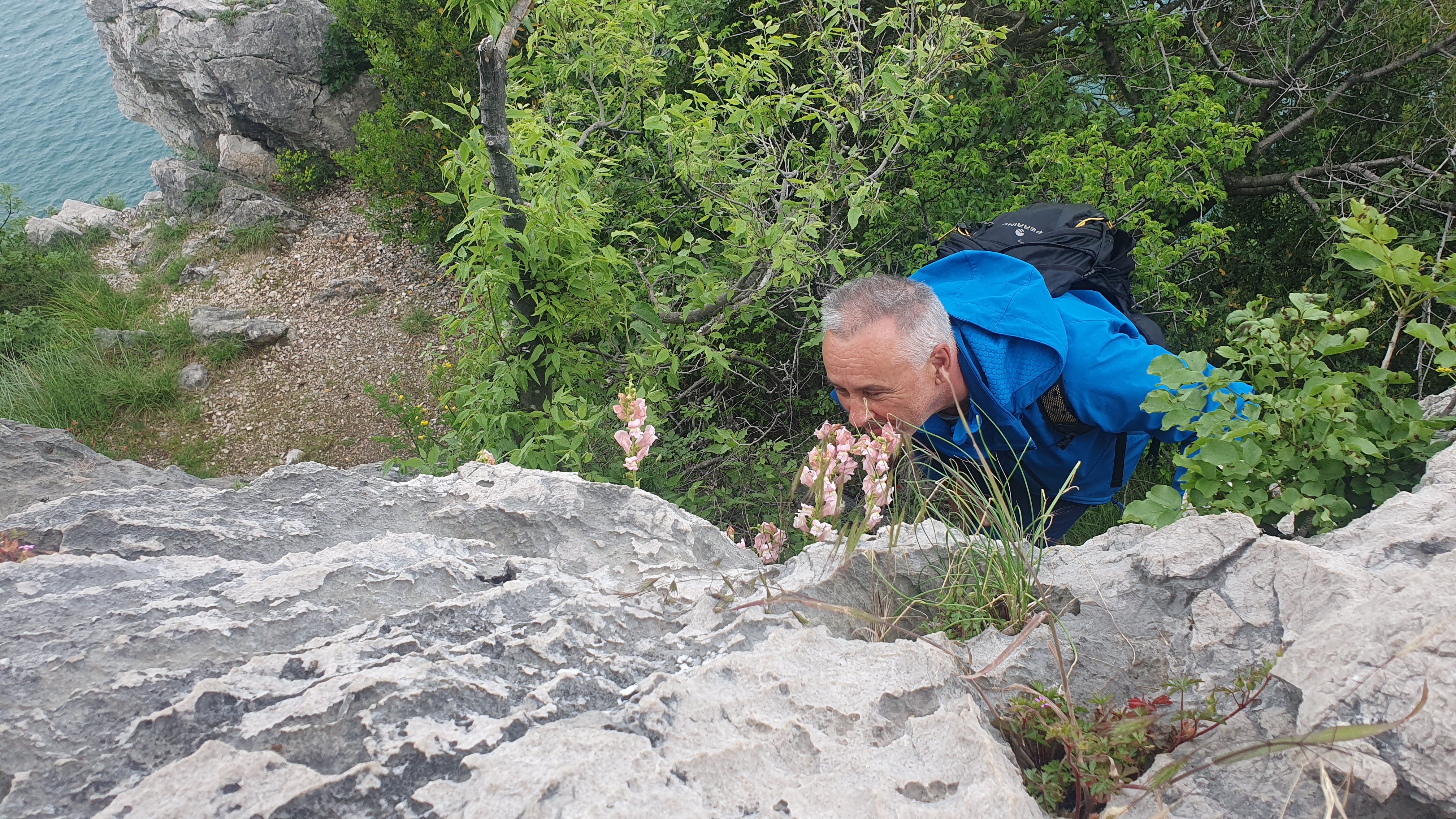 Hodamo po samom rubu klisure visoko iznad Jadranskog mora od jednog vidikovca do drugog. Neodoljivo je nagnuti se preko ruba, pogledati okomito dolje, vidjeti razne grmove cvijeća dok valovi i dalje uporno zapljuskuju stijene i mijenjaju ih.